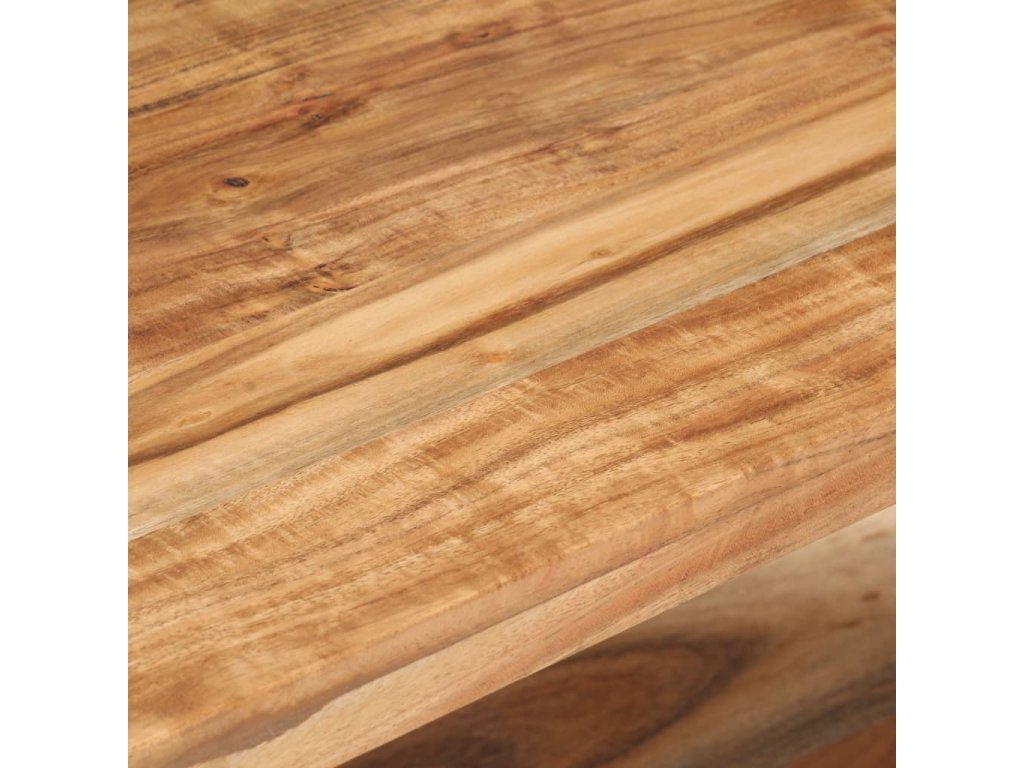 TV stolík je vyrobený z akáciového masívu, takže je skutočne stabilný a trvácny. Vďaka remeselnému opracovaniu a krásnej textúre dreva je každý kus nábytku jedinečný a trochu odlišný od ostatných. Železné nohy s čiernou práškovou povrchovou úpravou prinášajú potrebnú stabilitu. Polička v spodnej časti poslúži ako ideálne miesto na DVD prehrávač, herné konzoly, streamovacie zariadenia či mediálne nosiče.