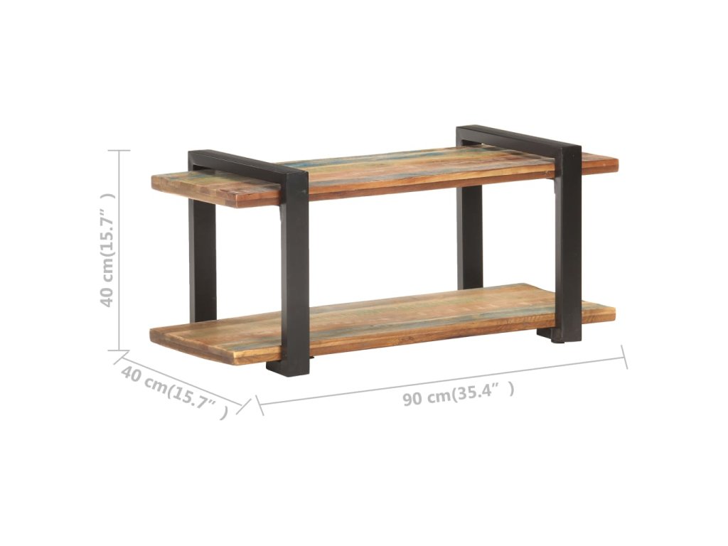 TV stolík je vyrobený z recyklovaného dreva, ktoré pochádza z trámov, podláh a nosníkov zo starých zbúraných stavieb a pozostáva z rôznych typov dreva, ako napríklad borovicového, tíkového, bukového, dubového, cédrového, mangového či akáciového dreva. Recyklované drevo sa preto vyznačuje vlastnosťami týchto typov dreva. Recyklované drevo je staré, zvetrané a usušené, a preto sa nezmršťuje ani neohýba. Komoda je kompletne ručne vyrobená a vďaka krásnej textúre dreva je každý kus nábytku jedinečný a trochu odlišný od ostatných. Železné nohy s práškovou povrchovou úpravou prinášajú potrebnú stabilitu. Polička v spodnej časti poslúži ako ideálne miesto na DVD prehrávač, herné konzoly, streamovacie zariadenia či mediálne nosiče.
