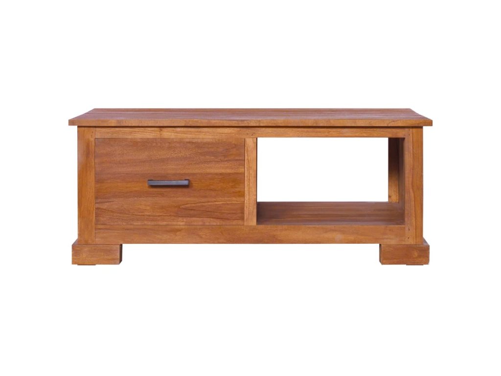 TV skrinka je vyhotovená z tvrdého tíkového dreva, ktoré bolo umelo vysušené v sušiarni a jeho povrch bol následne jemne obrúsený, aby získal hladký vzhľad. Tíkové drevo sa vyznačuje výnimočnou pevnosťou, a tak predstavuje jeden z najvhodnejších materiálov na výrobu nábytku spomedzi všetkých ostatných druhov dreva. Ak si chcete zaobstarať nábytok, ktorý vám bude slúžiť dlhé roky, tíkové drevo je pre vás ako stvorené. Skrinka má 1 zásuvku a 1 otvorenú poličku, a tak poskytuje praktický priestor na odkladanie rôznych predmetov.