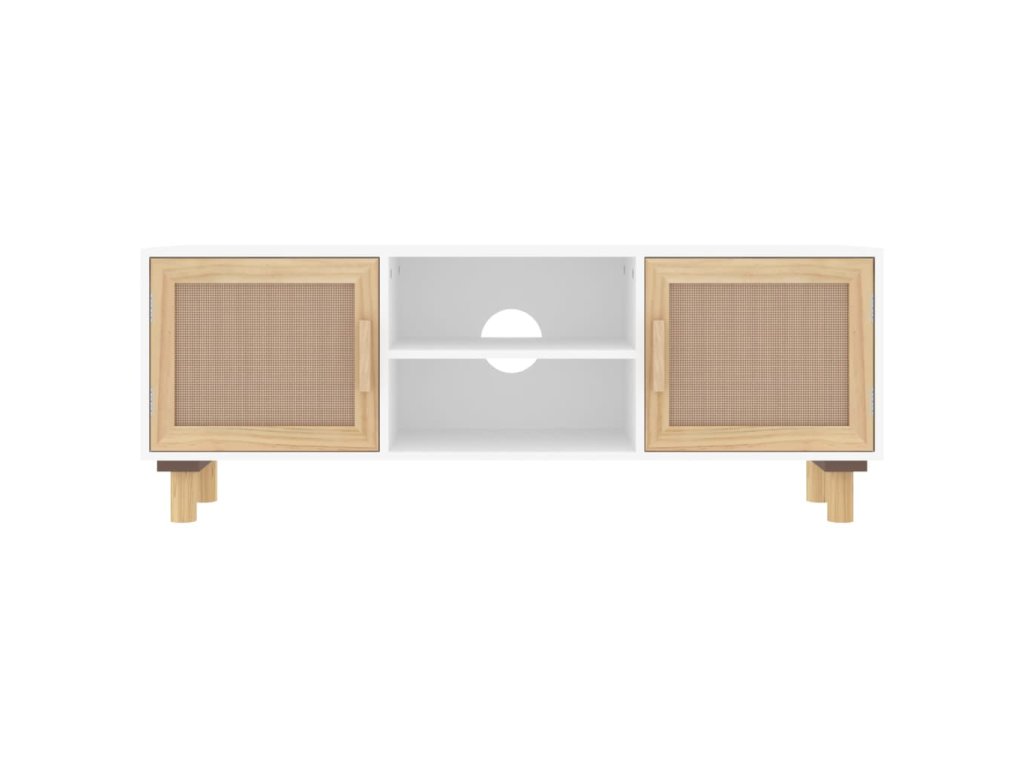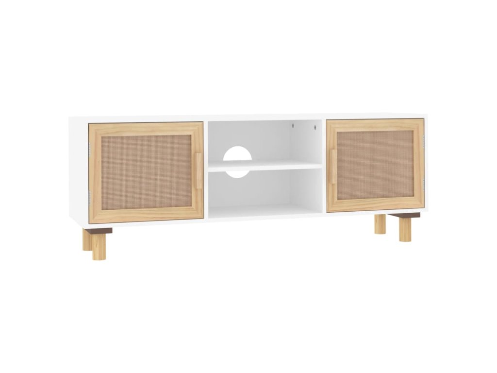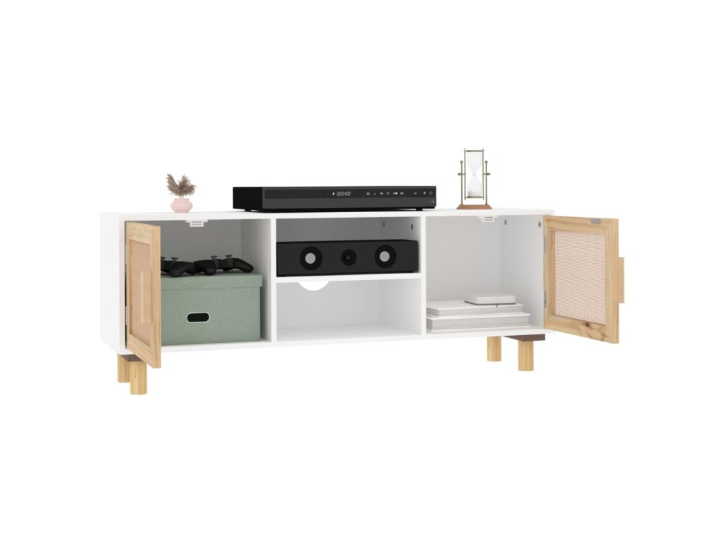 vidaXL TV skrinka biela 105x30x40 cm masívna borovica a prírodný ratan