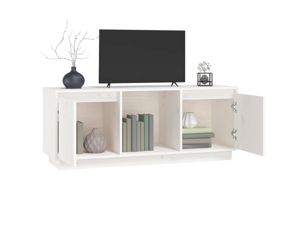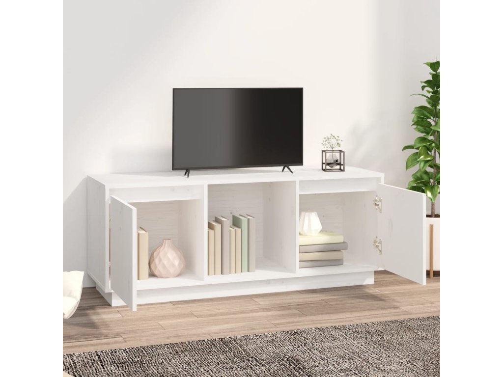 vidaXL TV skrinka biela 110,5x35x44 cm masívna borovica