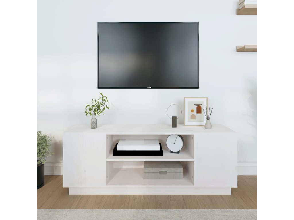 vidaXL TV skrinka biela 110x35x40,5 cm masívna borovica