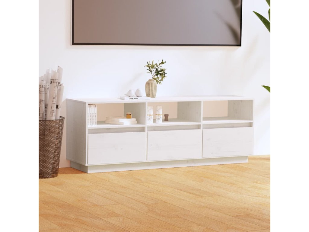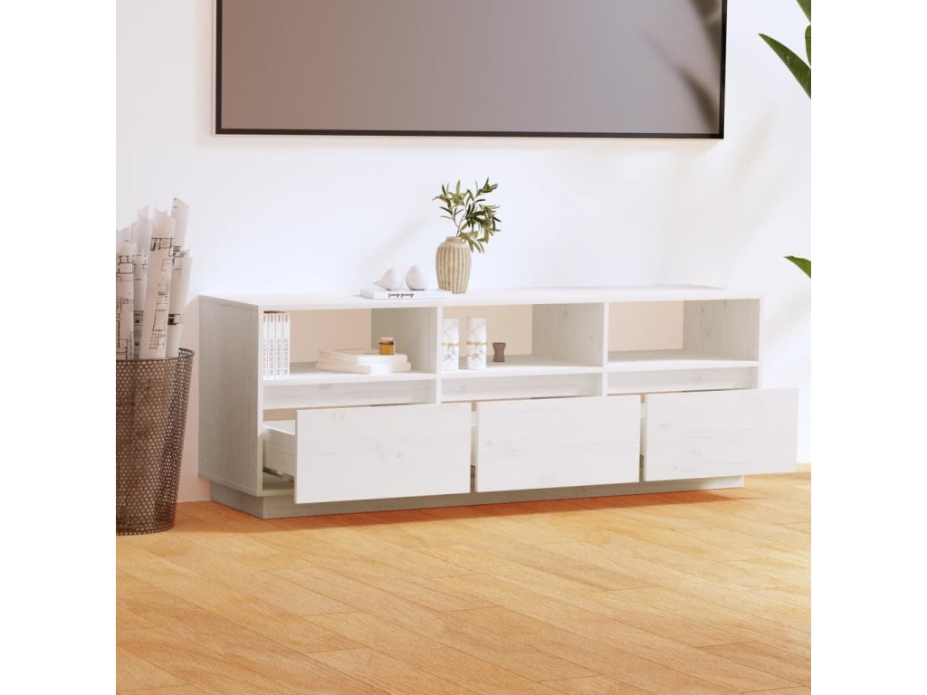 vidaXL TV skrinka biela 140x37x50 cm masívna borovica