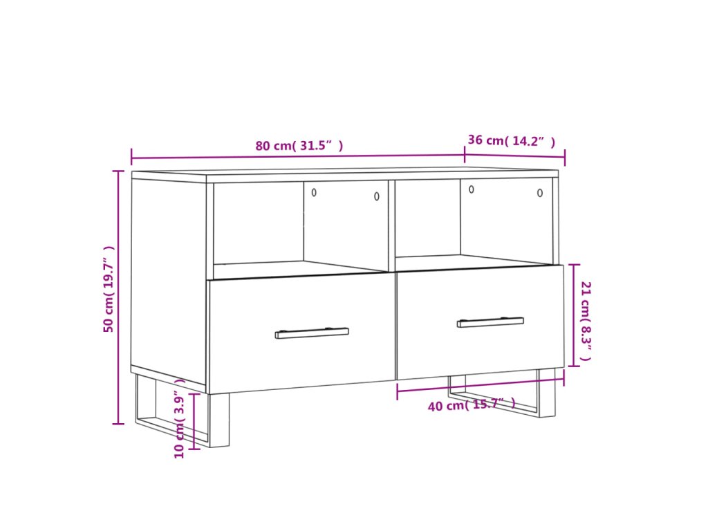 - Veľký úložný priestor: TV skrinka má 2 priečinky a 2 zásuvky, vďaka ktorým je ideálna na uloženie vašich časopisov, DVD alebo iných predmetov.