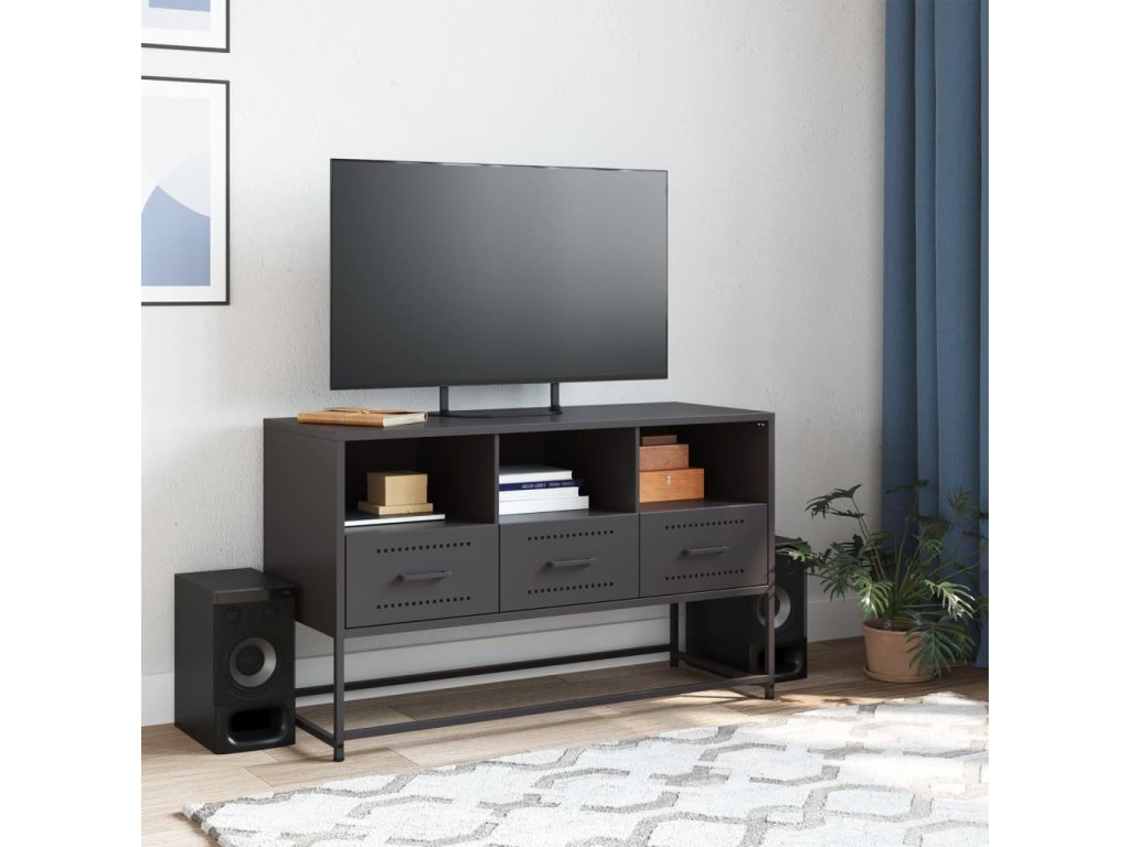 vidaXL TV skrinka čierna 100,5x39x60,5 cm oceľ