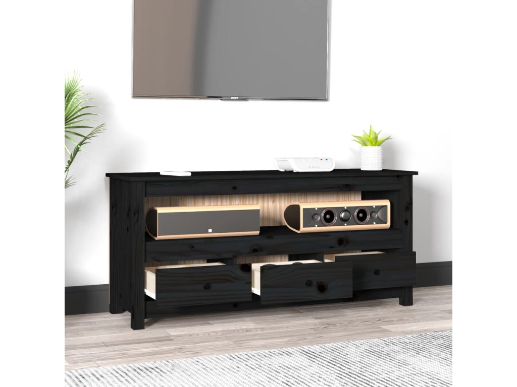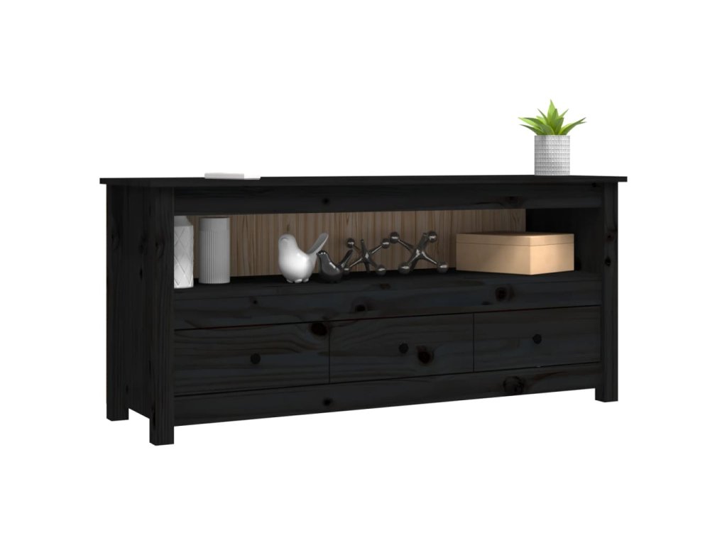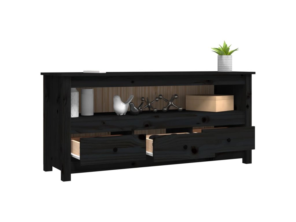 vidaXL TV skrinka čierna 114x35x52 cm masívna borovica