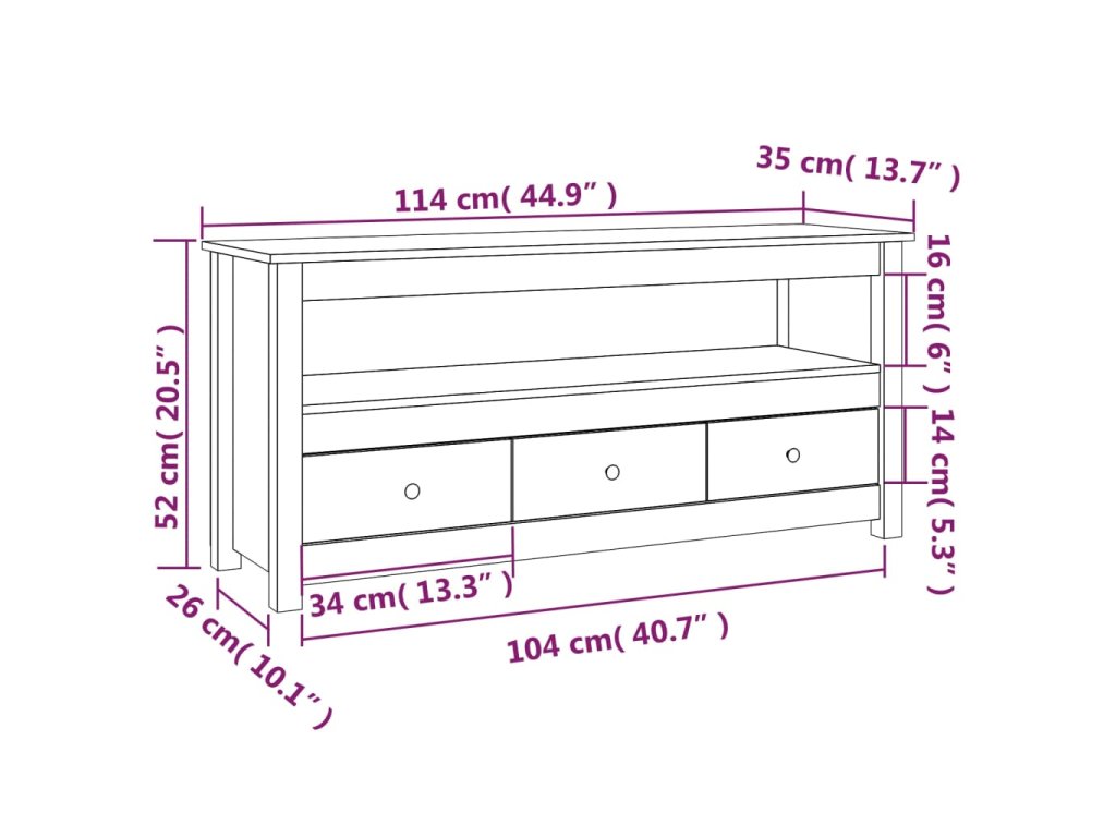 - Rozmery: 114 x 35 x 52 cm (Š x H x V)
