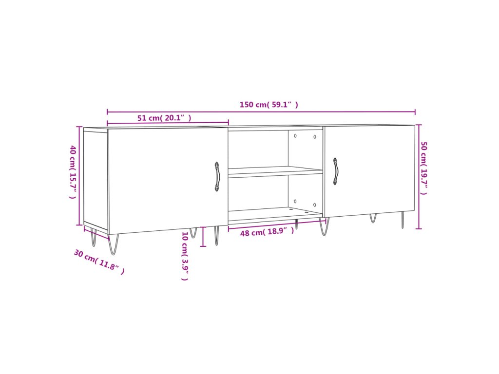 - Veľký úložný priestor: TV skrinka má 4 priehradky, vďaka ktorým je ideálna na uloženie vašich časopisov, DVD alebo iných predmetov.