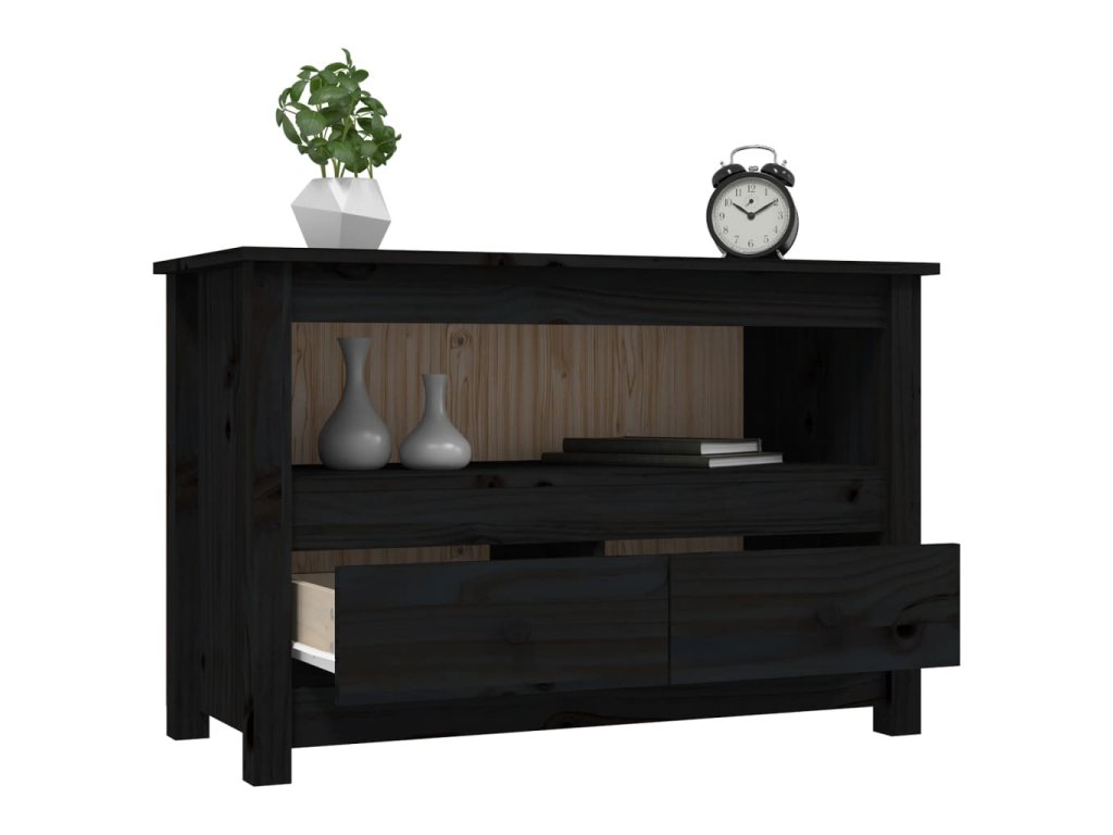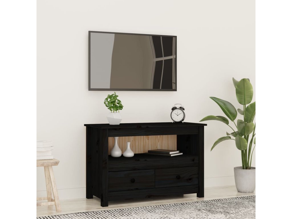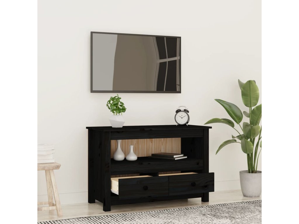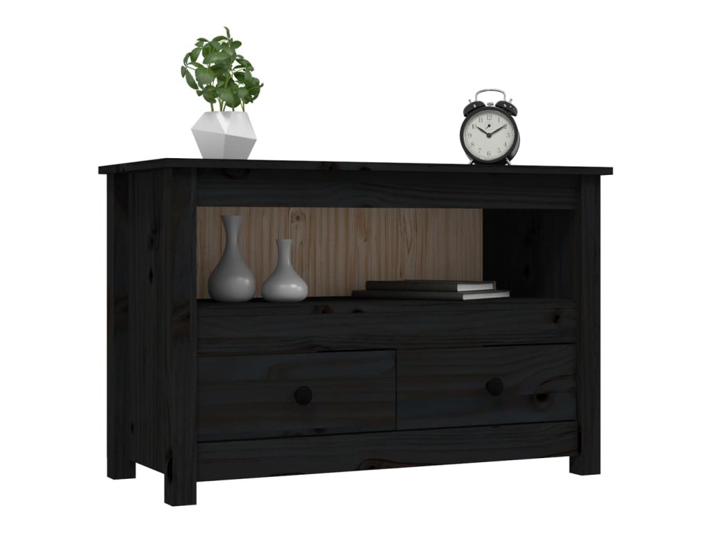 vidaXL TV skrinka čierna 79x35x52 cm masívna borovica