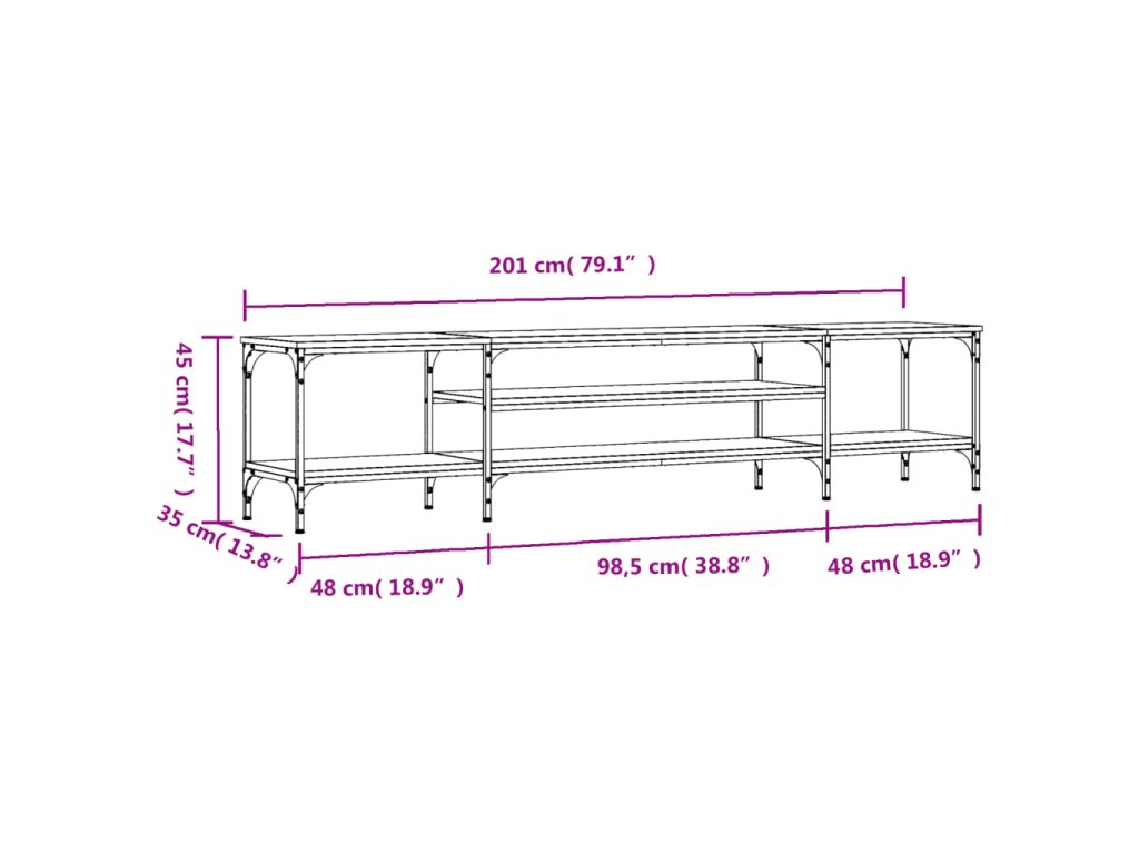 vidaXL TV skrinka dub sonoma 201x35x45 cm kompozitné drevo a železo