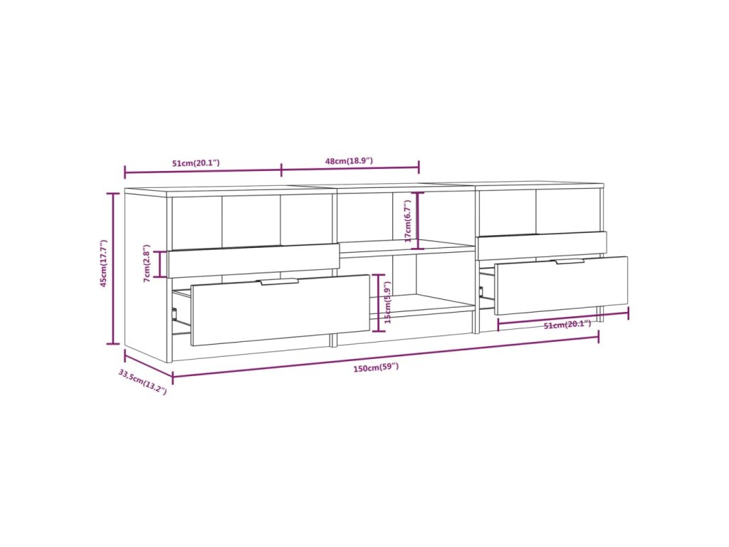 vidaXL TV skrinka dymový dub 150x33,5x45 cm spracované drevo