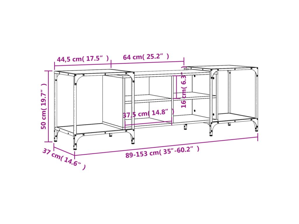 vidaXL TV skrinka dymový dub 153x37x50 cm kompozitné drevo
