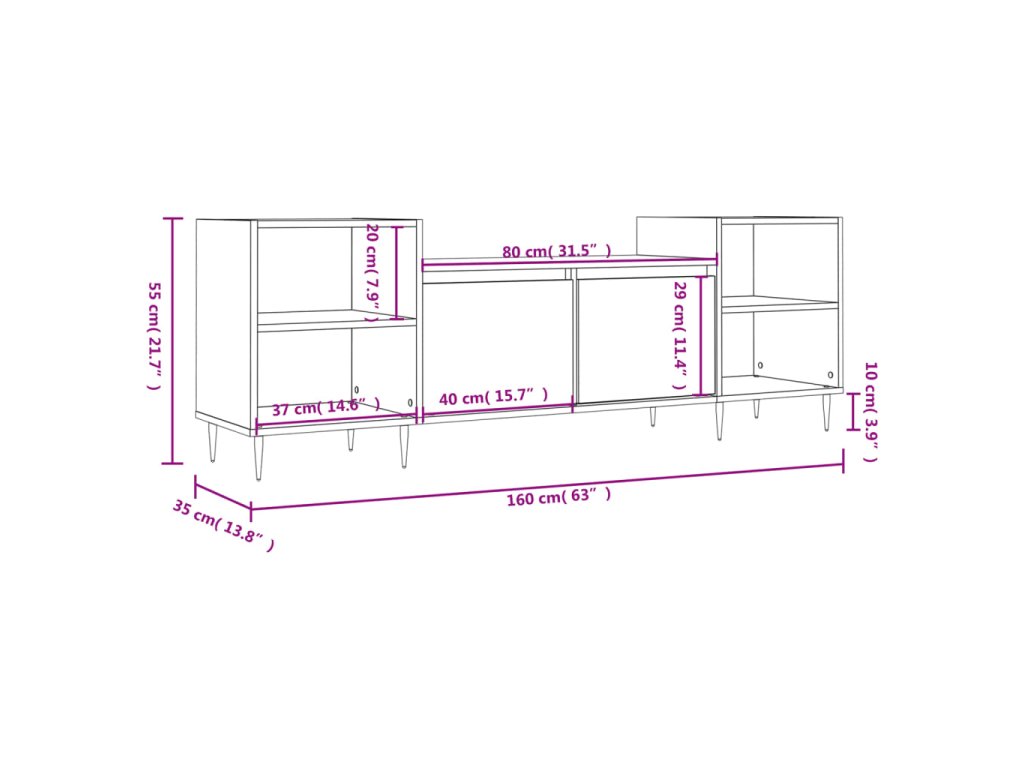 vidaXL TV skrinka dymový dub 160x35x55 cm spracované drevo