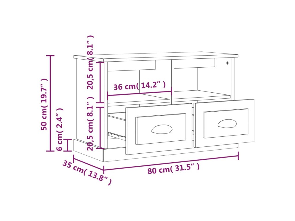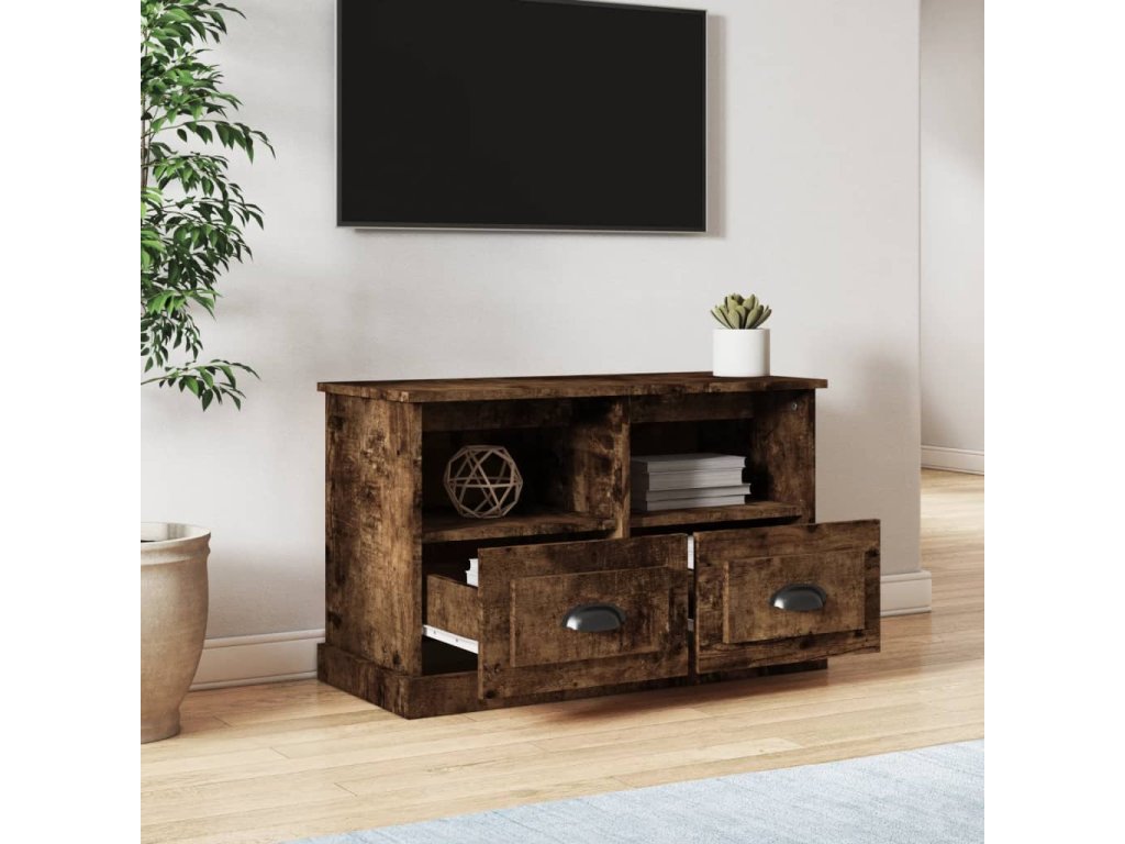 vidaXL TV skrinka dymový dub 80x35x50 cm spracované drevo