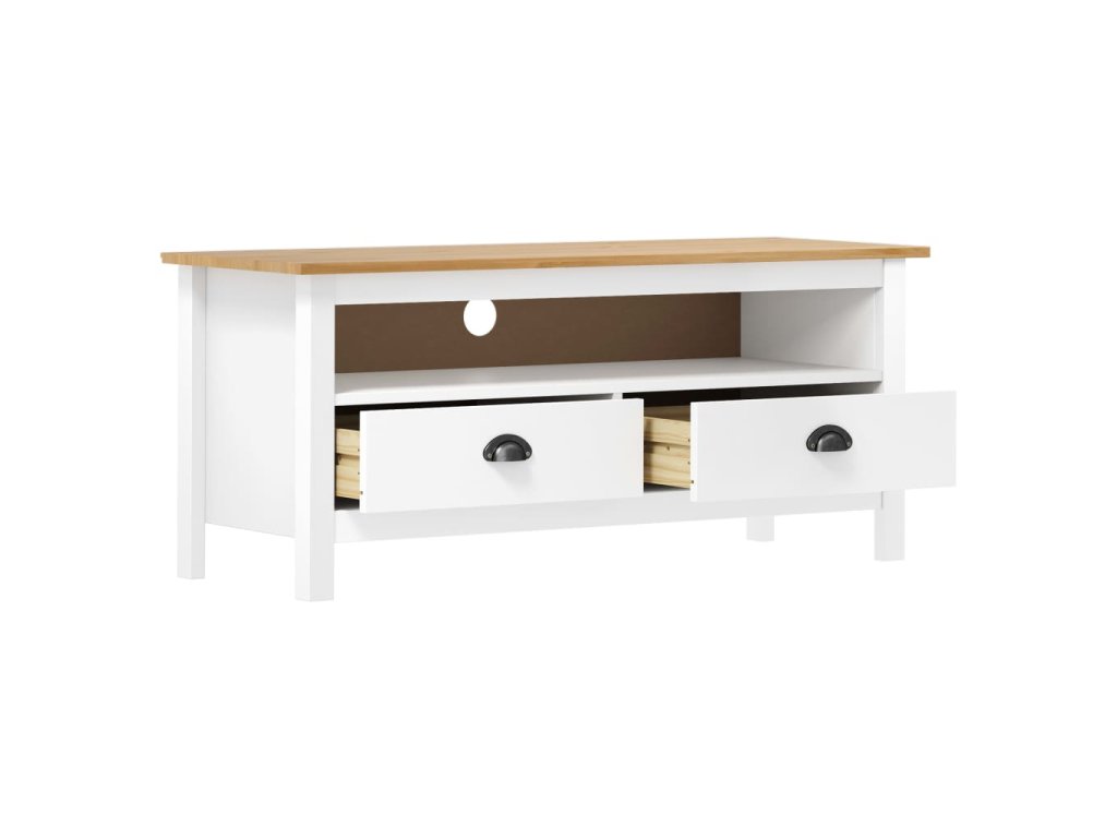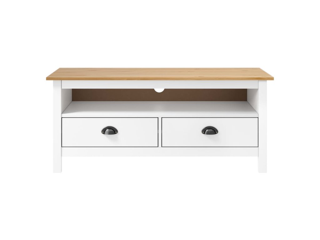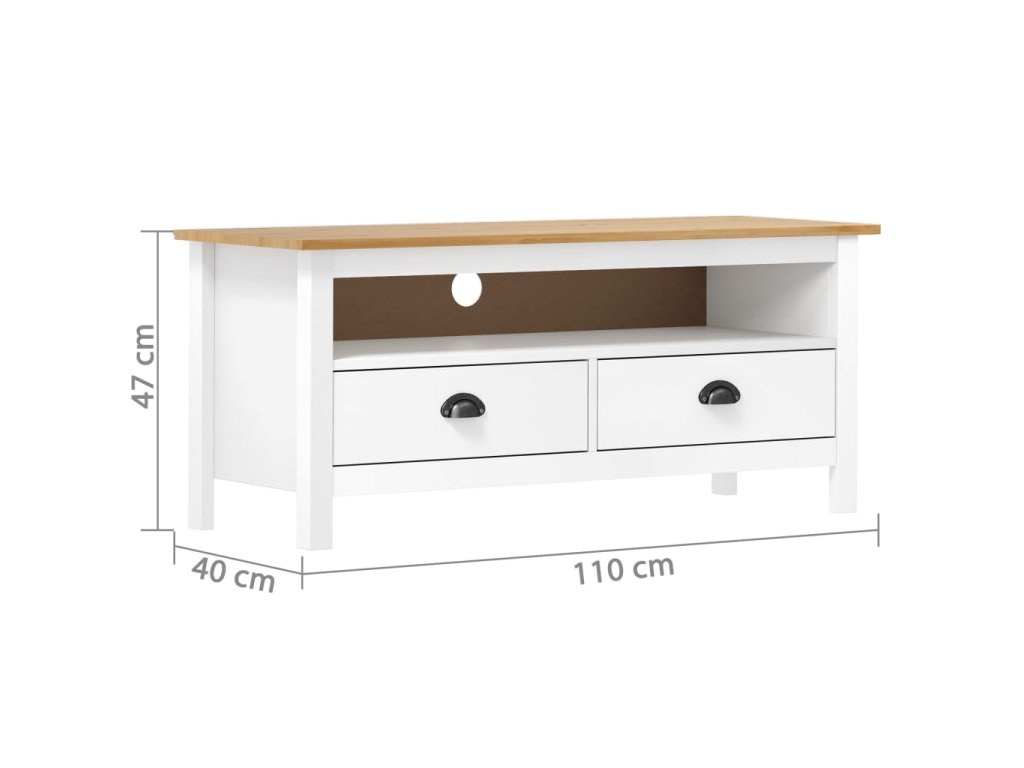 vidaXL TV skrinka Hill, biela 110x40x47 cm, borovicový masív
