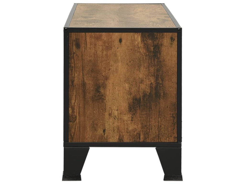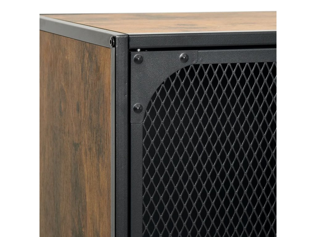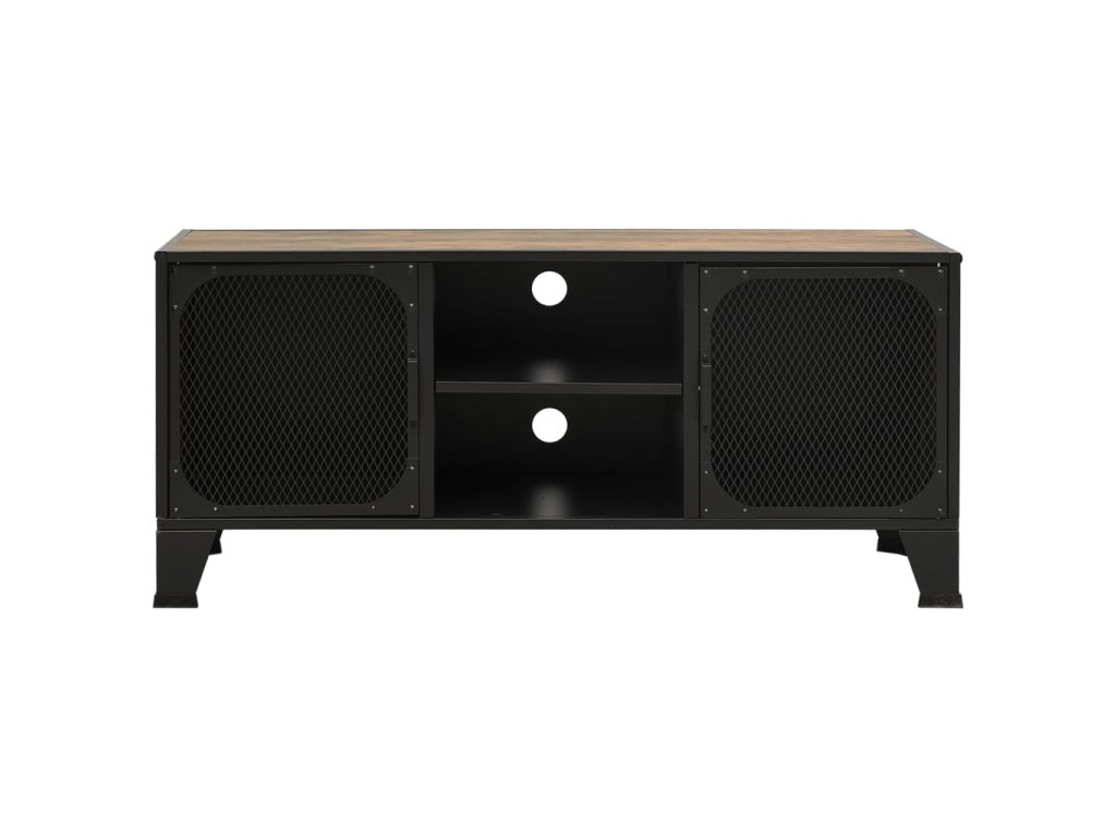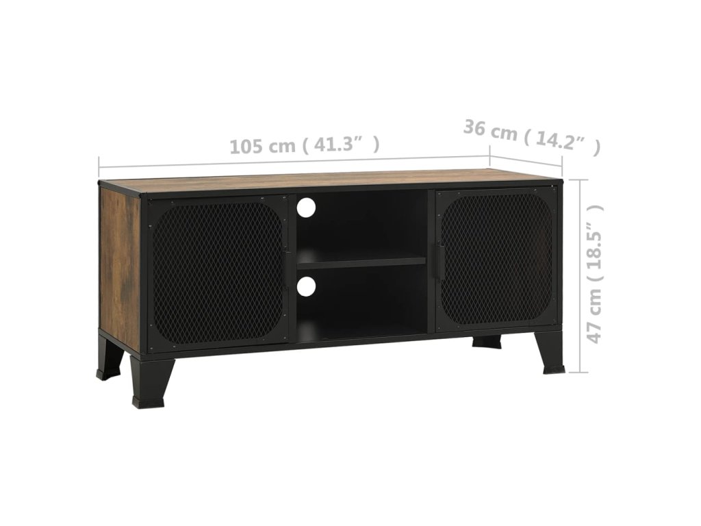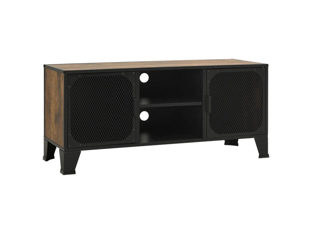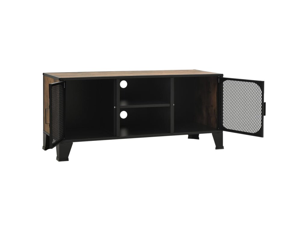 TV skrinka je vyrobená z kovu a MDF, vďaka čomu je veľmi pevná a odolná. Televízny stolík má 2 sieťované dvierka a policu, a poskytujú dostatok úložného priestoru pre DVD, časopisy a ďalšie veci. Vďaka kombinácii kovového kovania pridá táto skrinka do vašej obývačky alebo spálne mestskú industriálnu atmosféru. Okrem toho sú na zadnom paneli 2 otvory na usporiadanie káblov médií a elektronických zariadení. Ľahko sa čistí vlhkou handričkou.