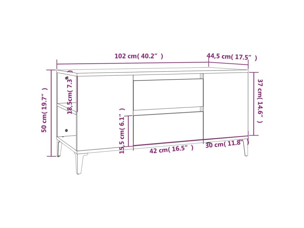 - Dostatok úložného priestoru: TV stolík obsahuje 4 otvorené priehradky a 2 zásuvky na prehľadné usporiadanie DVD prehrávačov, herných konzol, streamovacích zariadení a nosičov médií.