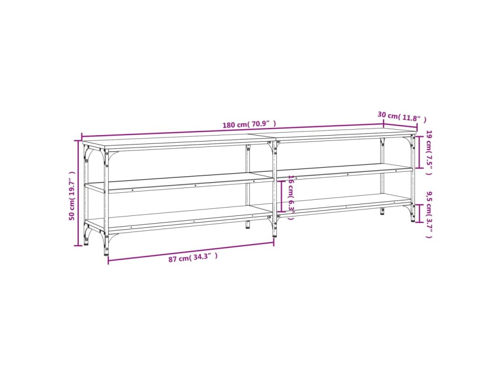 vidaXL TV skrinka hnedý dub 180x30x50 cm kompozitné drevo a kov