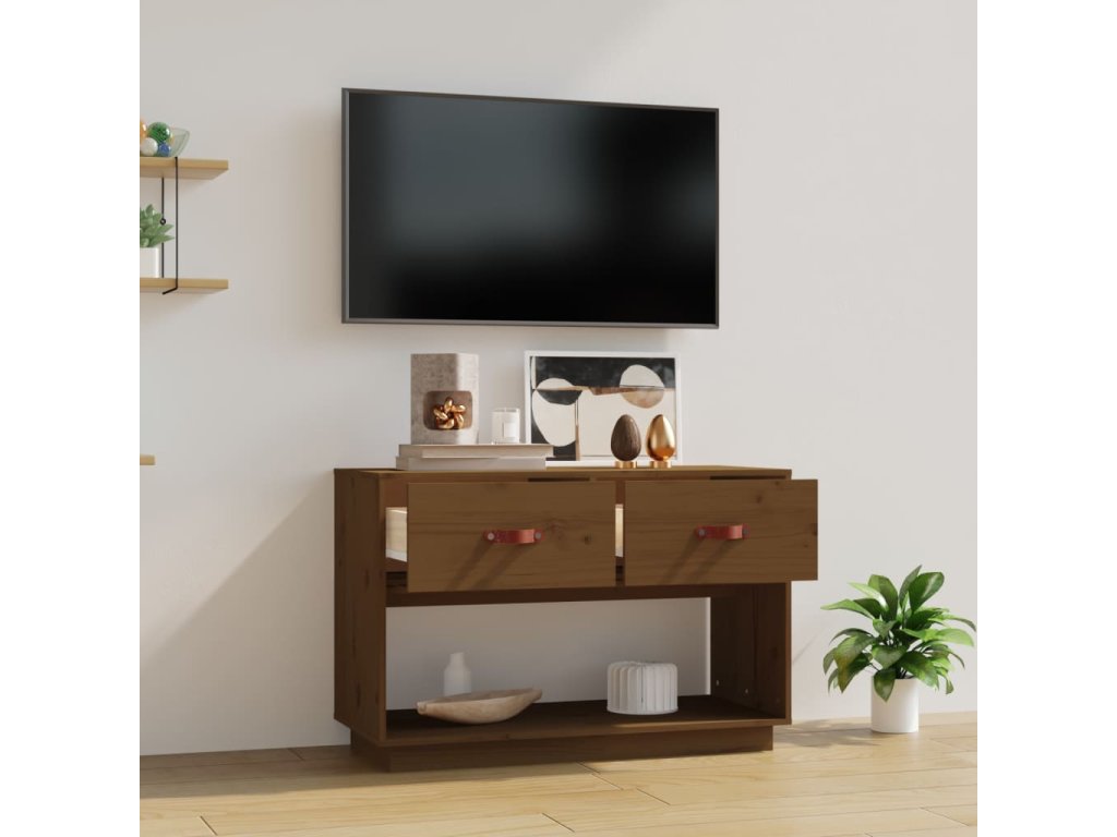vidaXL TV skrinka medovo-hnedá 90x40x60 cm masívna borovica