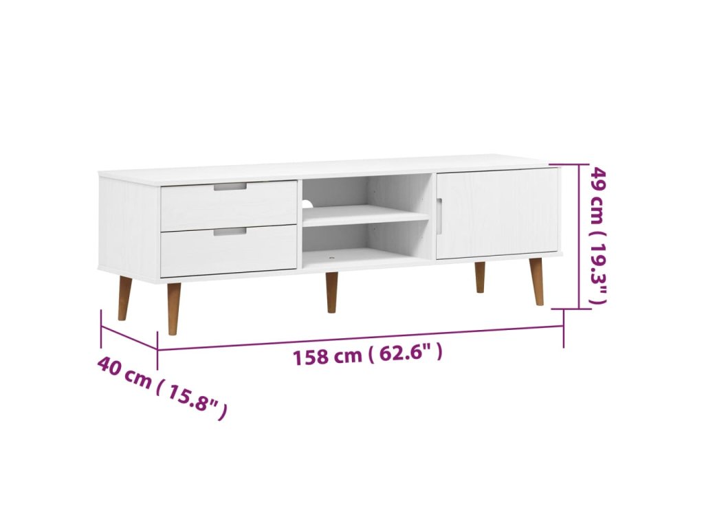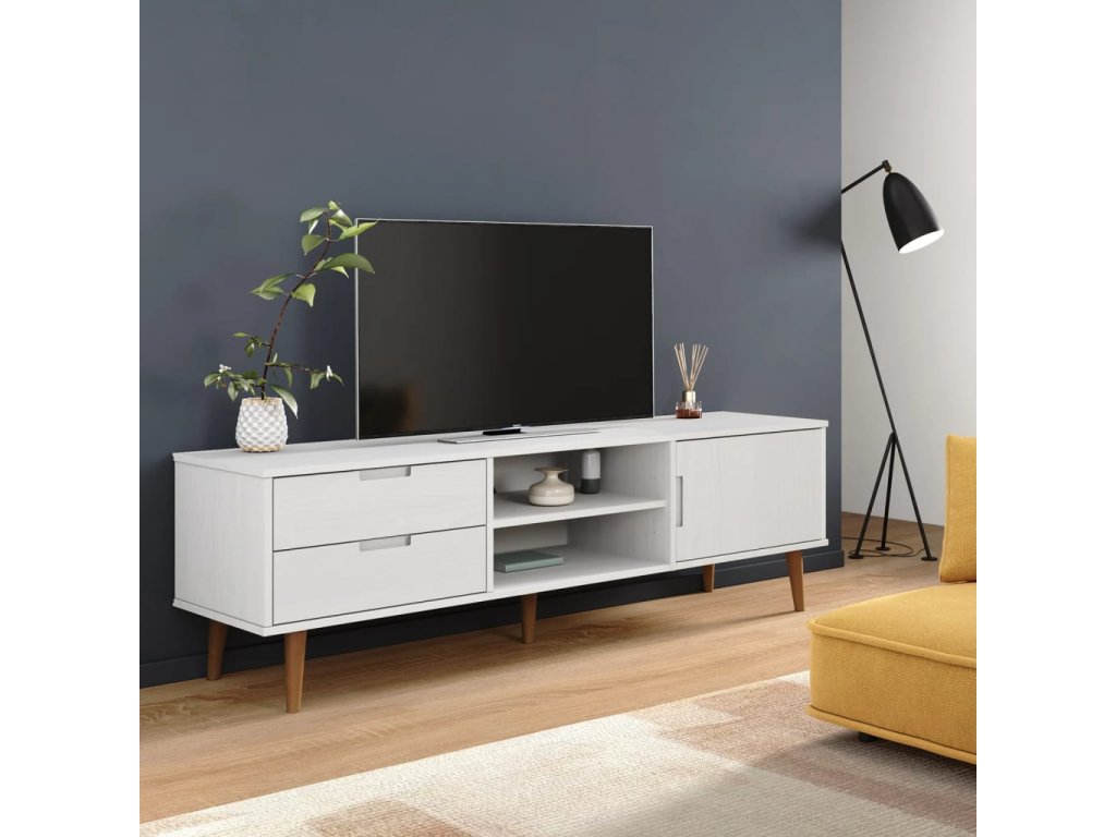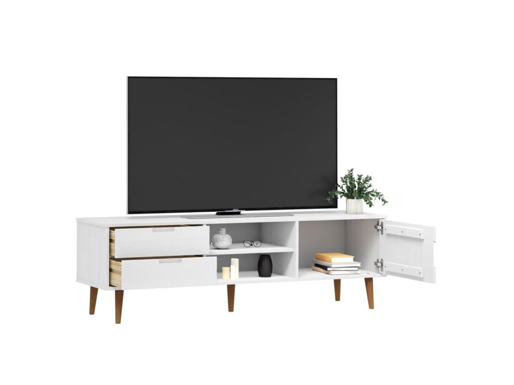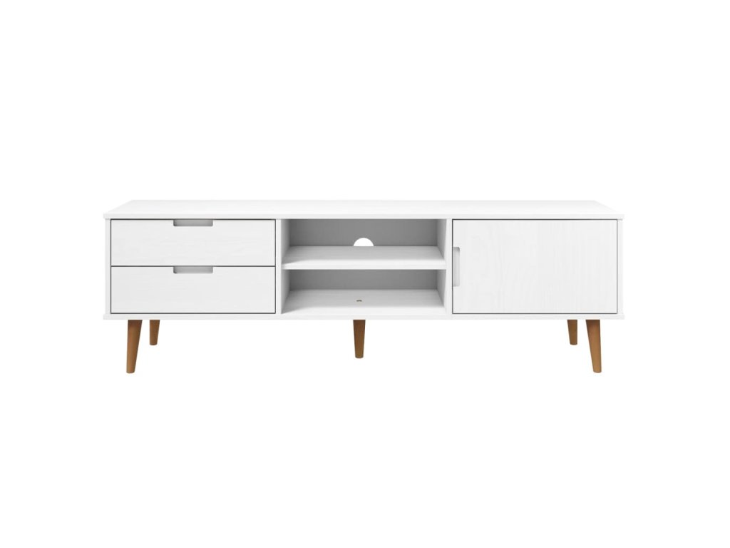 vidaXL TV skrinka MOLDE, biela 158x40x49 cm, borovicový masív