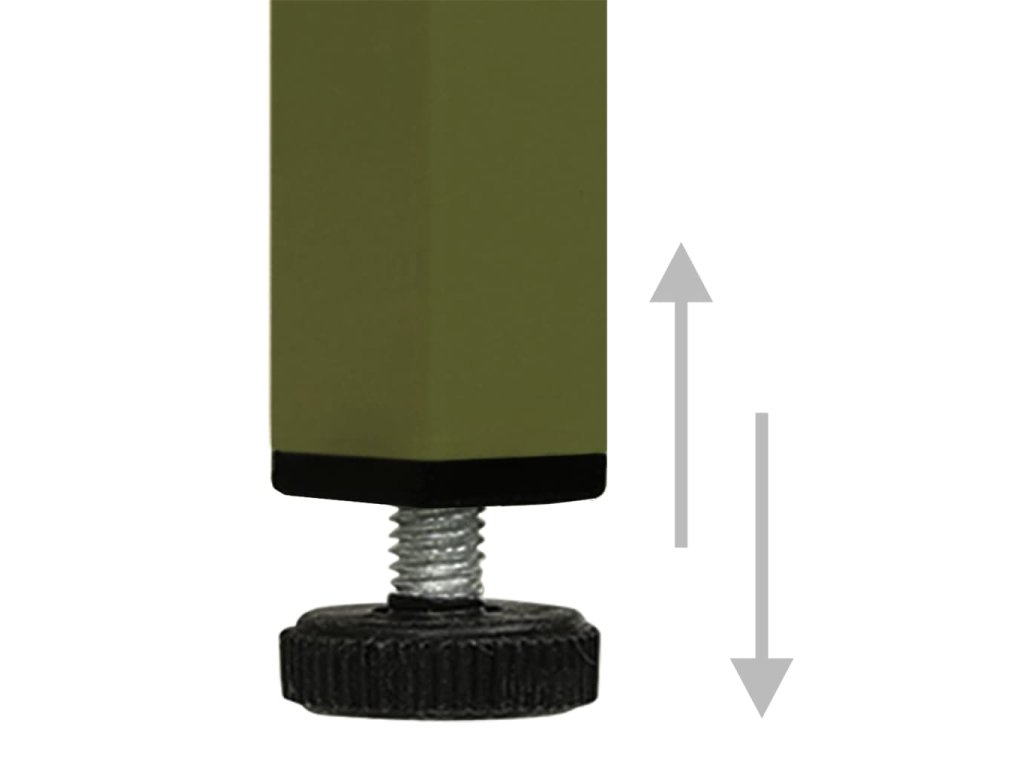Oceľová konštrukcia tejto TV jednotky je veľmi pevná a odolná. Na spodnej strane sú vyrovnávače, pomocou ktorých si výšku nastavíte podľa svojich potrieb. TV stolík má 2 sieťované dvierka s policou vo vnútri, a poskytuje dostatok úložného priestoru pre DVD, časopisy a ďalšie veci. Okrem toho sú na zadnom paneli 4 otvory na usporiadanie káblov elektronický zariadení. Ľahko sa čistí vlhkou handričkou.