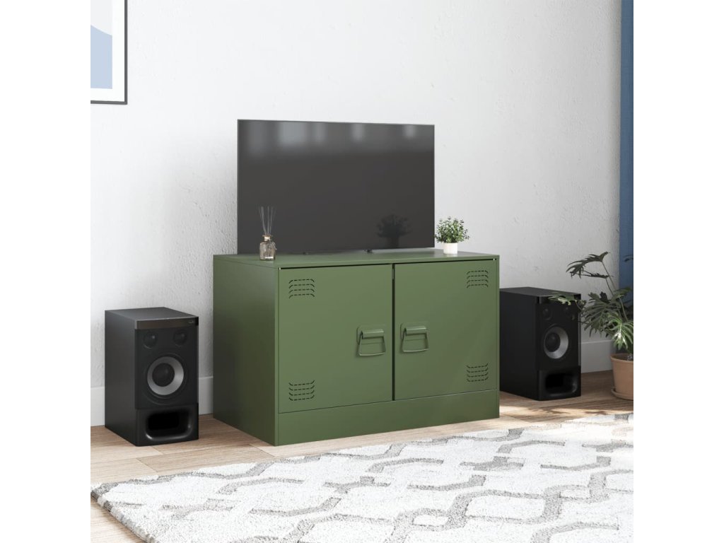 vidaXL TV skrinka olivovo-zelená 67x39x44 cm oceľ