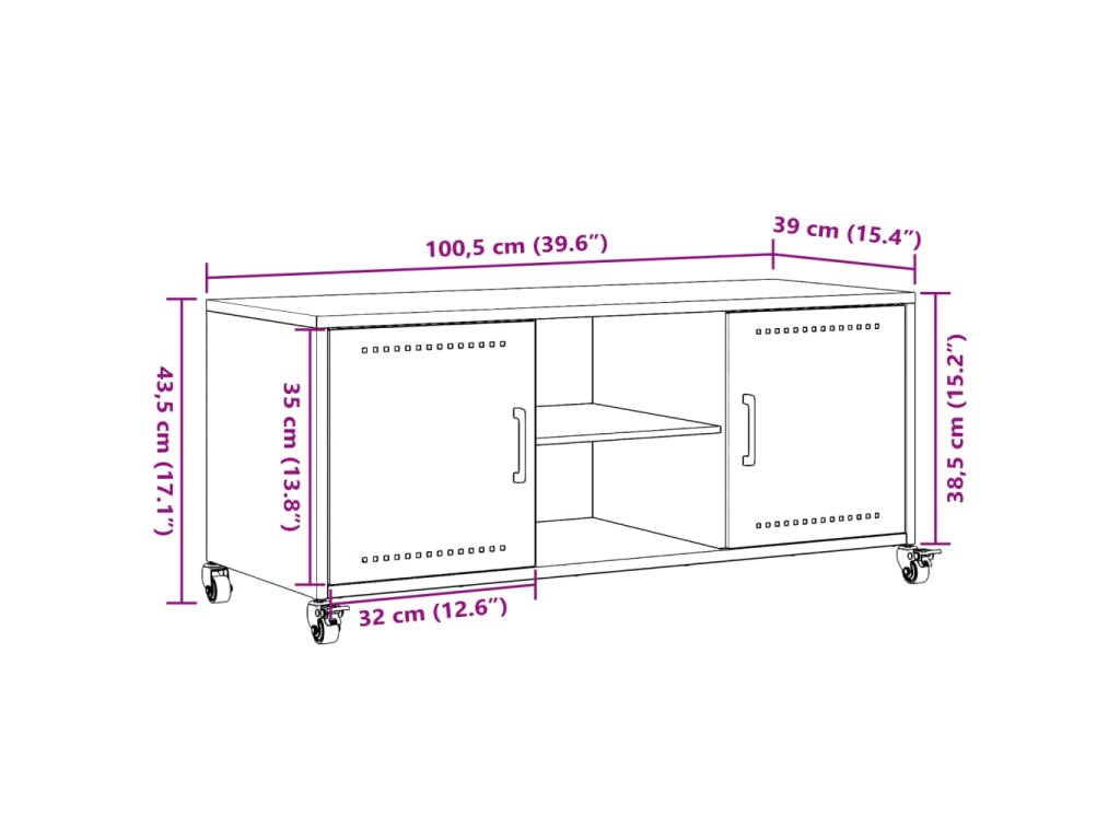 vidaXL TV skrinka ružová 100,5x39x43,5 cm oceľ