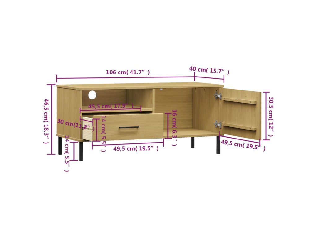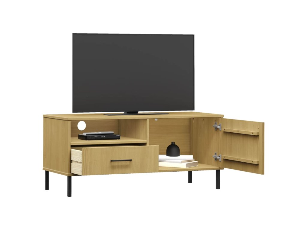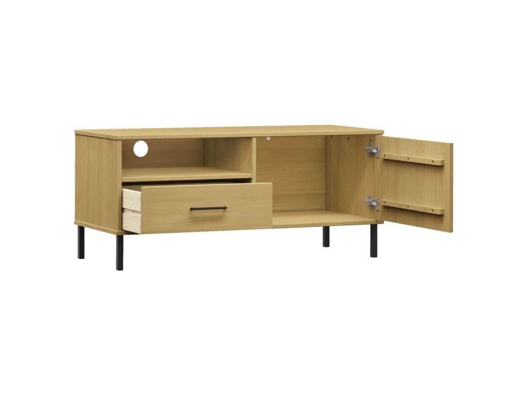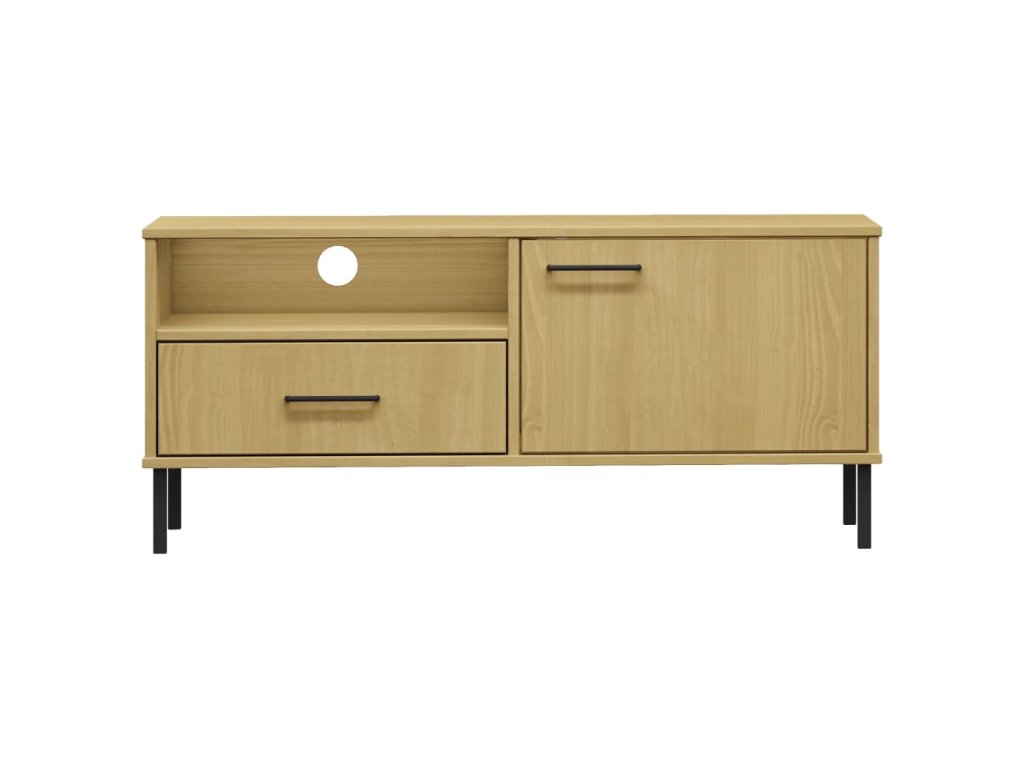 vidaXL TV skrinka s kovovými nohami hnedá masívna borovica OSLO