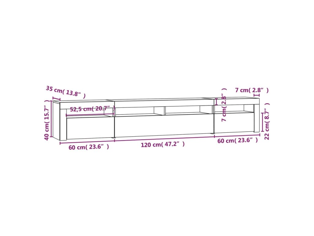 vidaXL TV skrinka s LED svetlami betónová sivá 240 x 35 x 40 cm