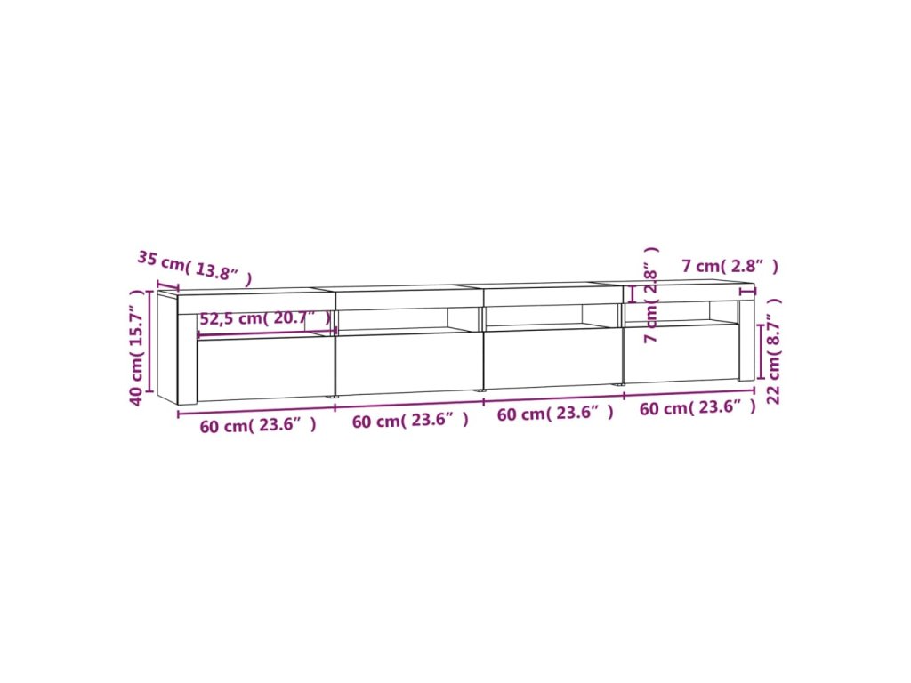 vidaXL TV skrinka s LED svetlami betónová sivá 240 x 35 x 40 cm