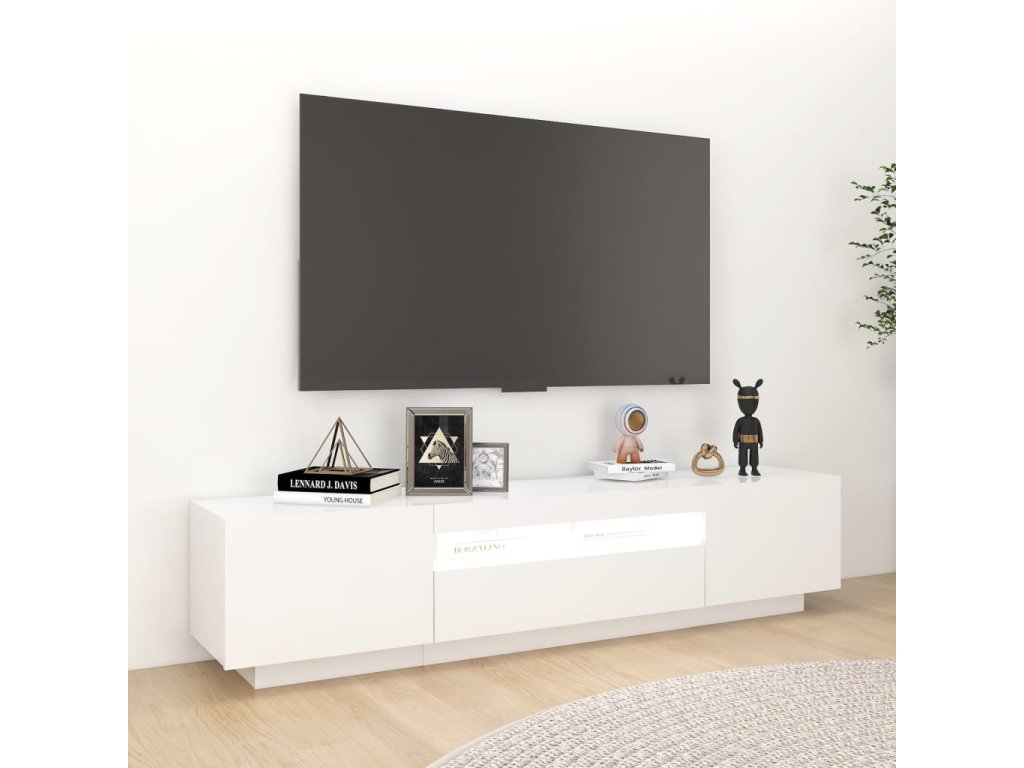 vidaXL TV skrinka s LED svetlami biela 180x35x40 cm