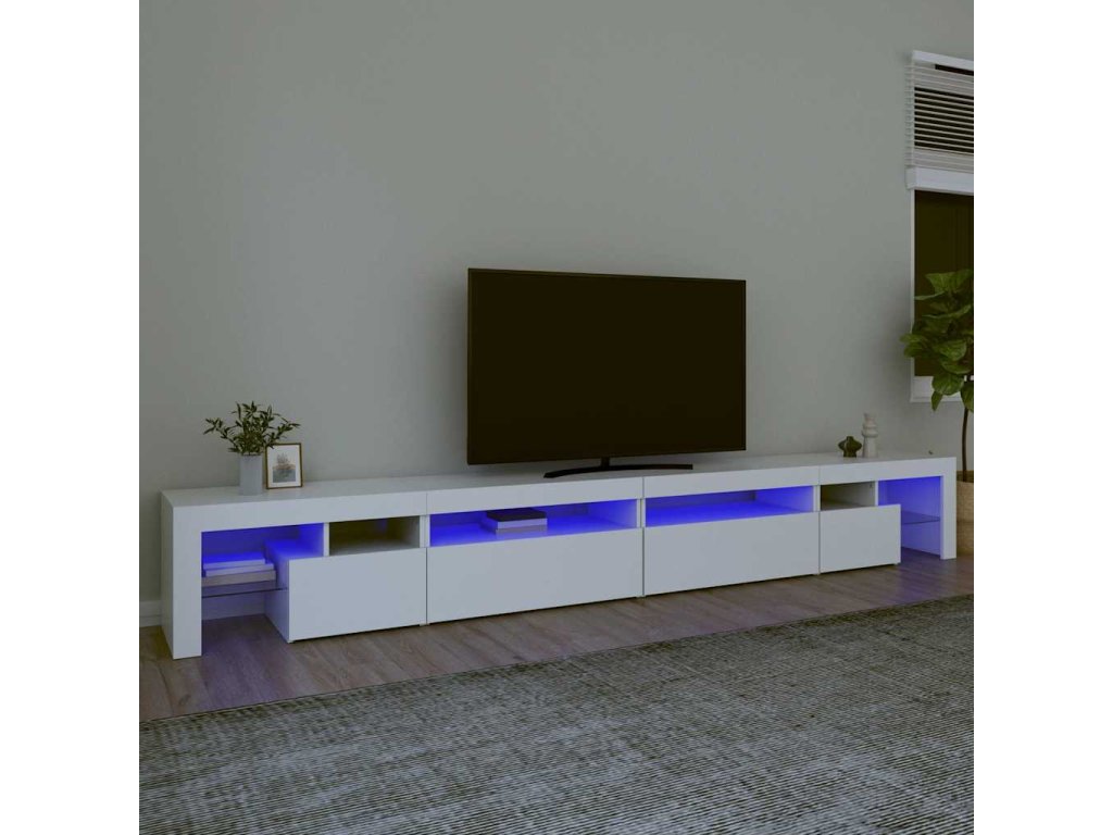 vidaXL TV skrinka s LED svetlami biela 290x36,5x40 cm