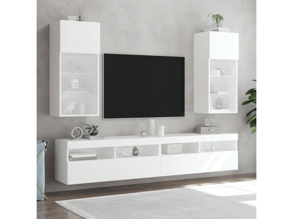 vidaXL TV skrinka s LED svetlami biela 40,5x30x90 cm
