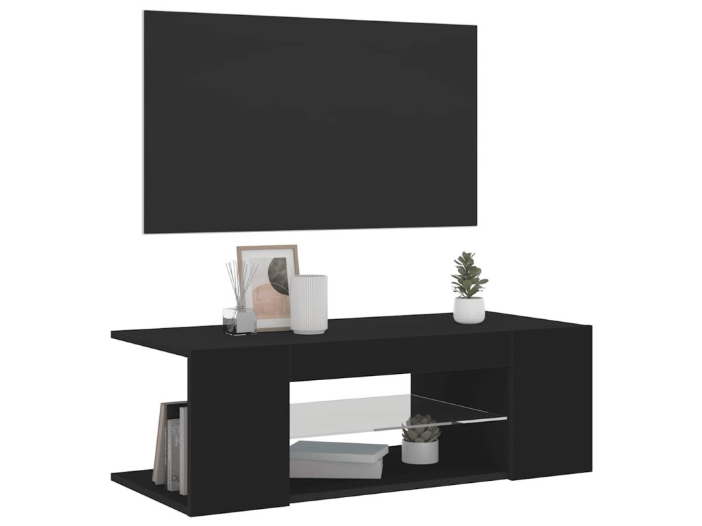 vidaXL TV skrinka s LED svetlami čierna 90x39x30 cm