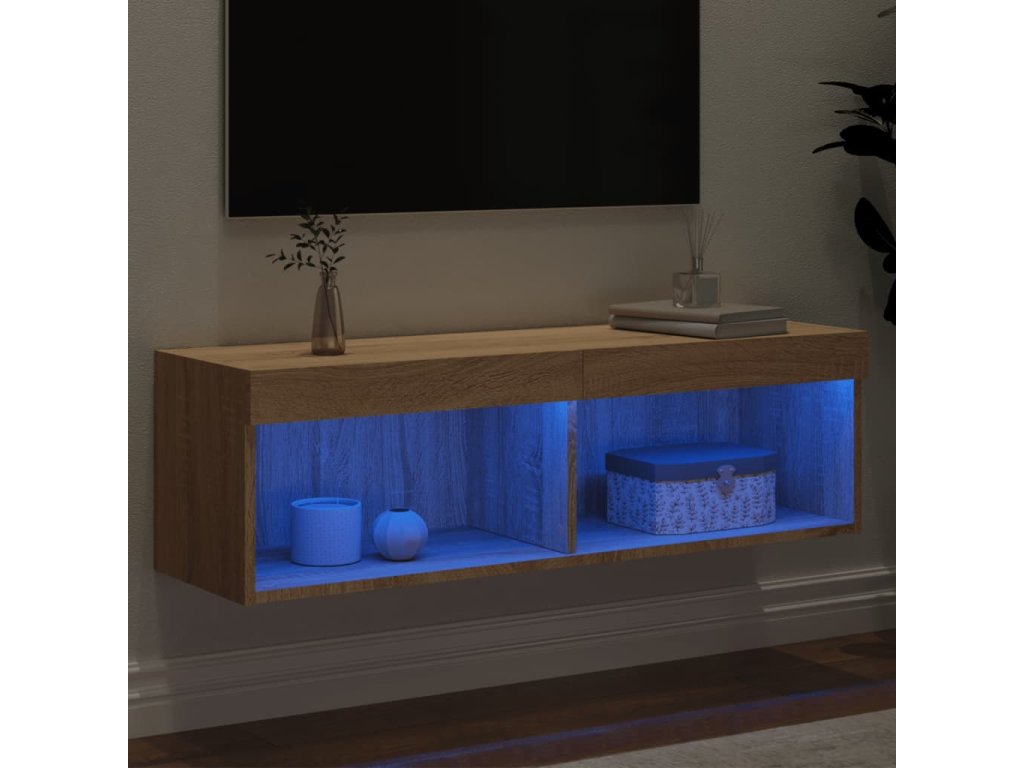 vidaXL TV skrinka s LED svetlami dub sonoma 100x30x30 cm