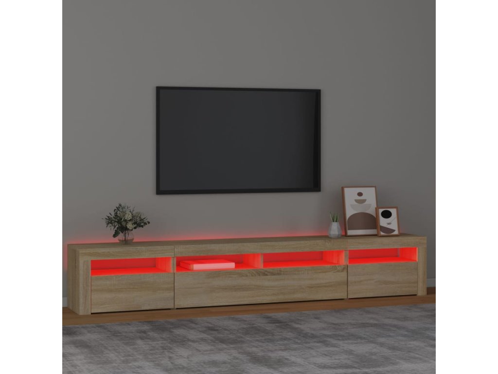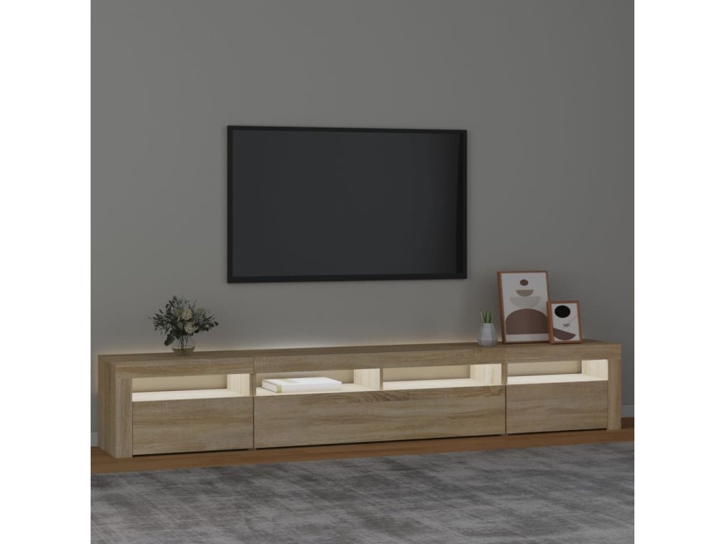 vidaXL TV skrinka s LED svetlami dub sonoma 240 x 35 x 40 cm