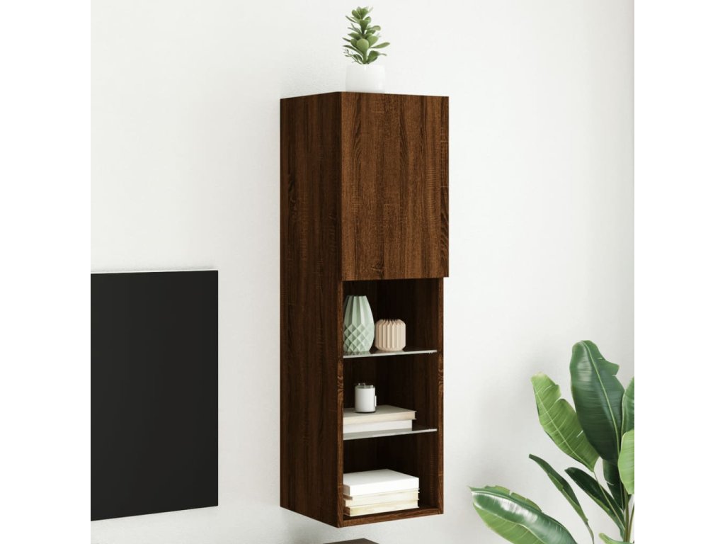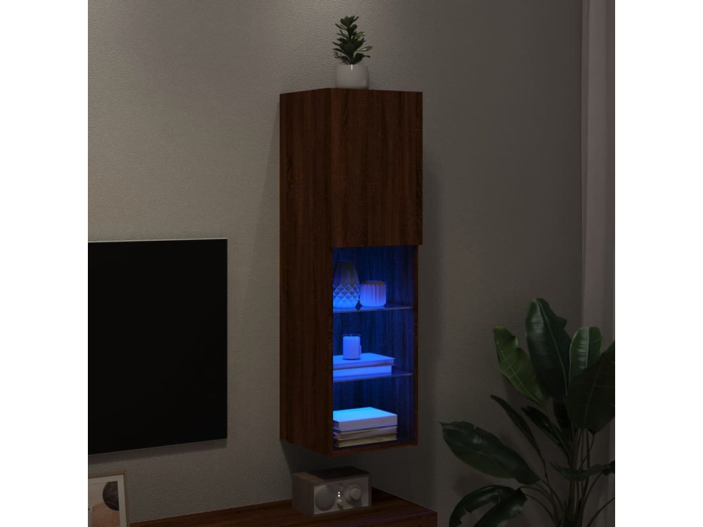 vidaXL TV skrinka s LED svetlami hnedý dub 30,5x30x102 cm