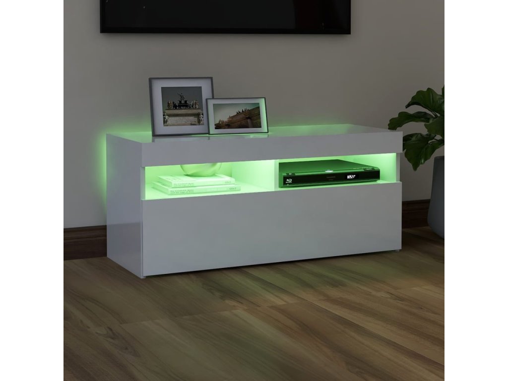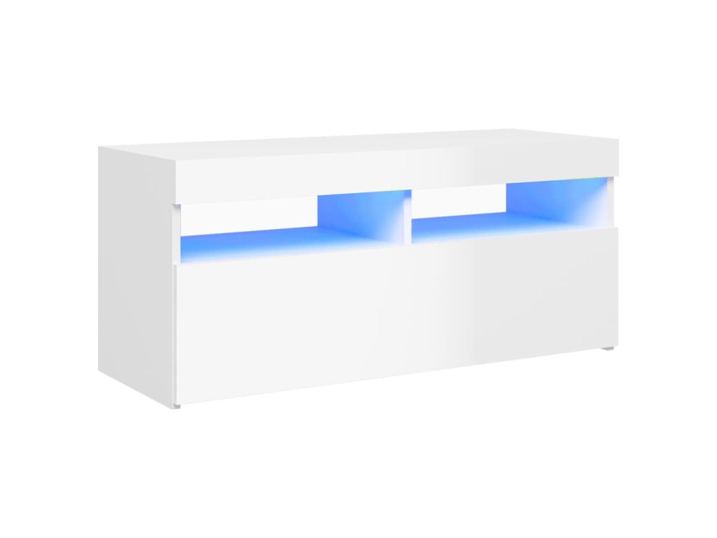 vidaXL TV skrinka s LED svetlami lesklá biela 90x35x40 cm