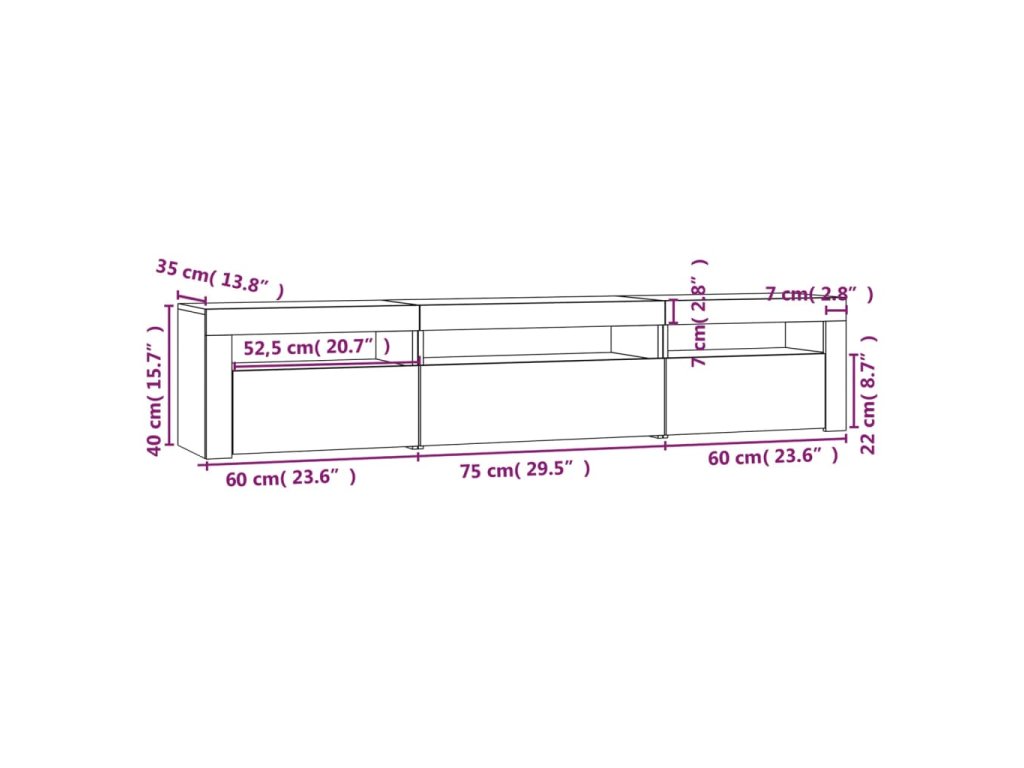 vidaXL TV skrinka s LED svetlami sivá sonoma 195x35x40 cm
