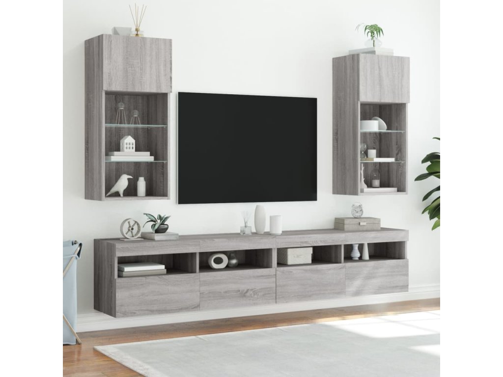 vidaXL TV skrinka s LED svetlami sivá sonoma 40,5x30x90 cm