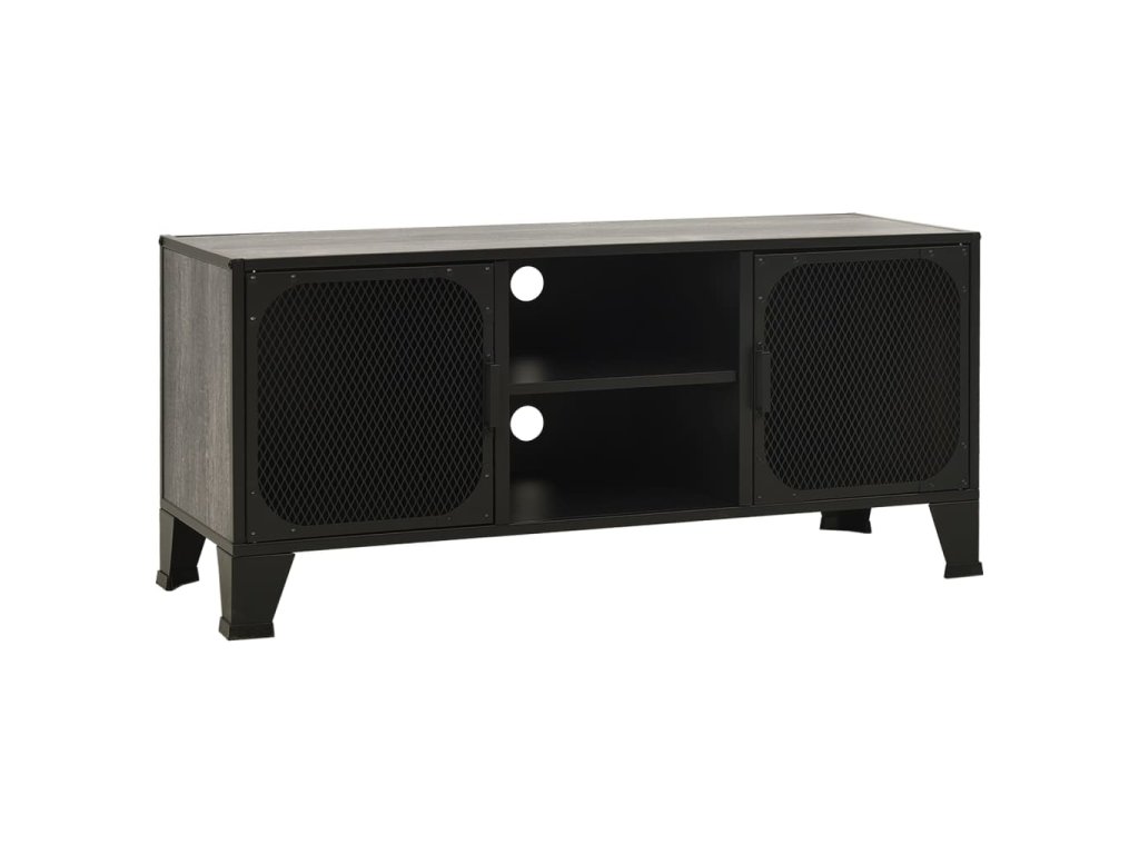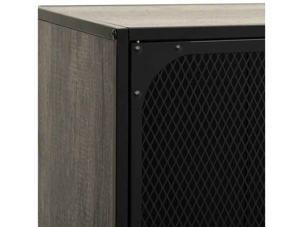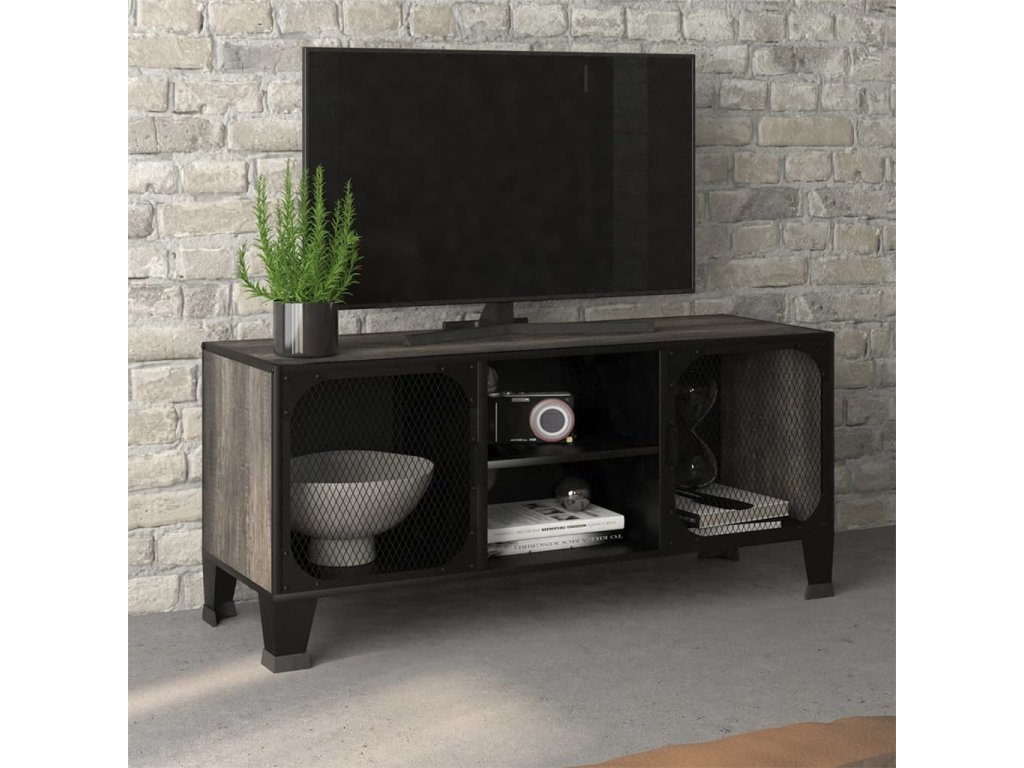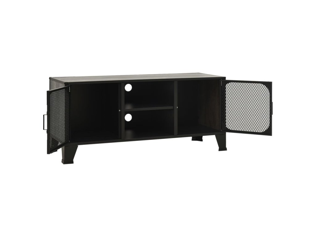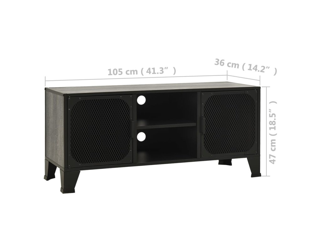 TV skrinka je vyrobená z kovu a MDF, vďaka čomu je veľmi pevná a odolná. Televízny stolík má 2 sieťované dvierka a policu, a poskytujú dostatok úložného priestoru pre DVD, časopisy a ďalšie veci. Vďaka kombinácii kovového kovania pridá táto skrinka do vašej obývačky alebo spálne mestskú industriálnu atmosféru. Okrem toho sú na zadnom paneli 2 otvory na usporiadanie káblov médií a elektronických zariadení. Ľahko sa čistí vlhkou handričkou.