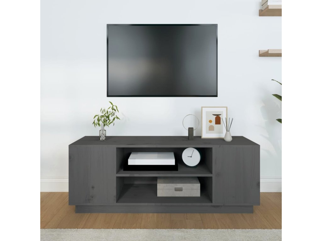 vidaXL TV skrinka sivá 110x35x40,5 cm masívna borovica