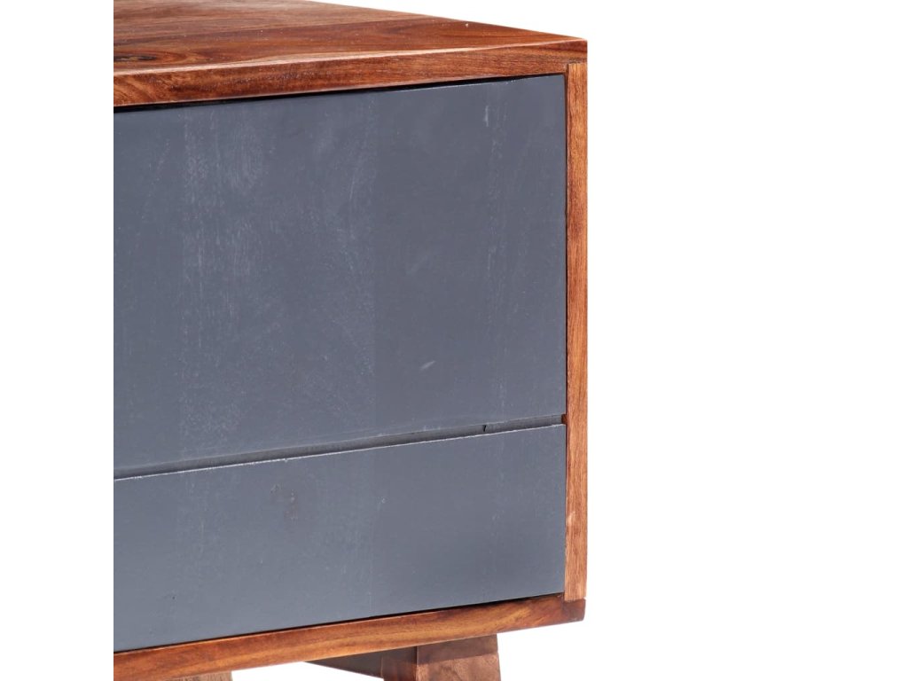 Táto stereo skrinka je vyrobená z masívneho sheeshamového dreva. Sheesham je tropické tvrdé drevo charakteristické svojou bohatou štruktúrou, a je známe aj ako ružové drevo alebo palisander. Každý krok procesu výroby sa vykonáva s najväčšou opatrnosťou, či už ide o leštenie, natieranie alebo lakovanie. Vďaka vynikajúcemu remeselnému spracovaniu a krásnej drevenej štruktúre je každý kúsok tejto drevenej skrinky HiFi jedinečný a mierne sa líši od iných kusov. Veľká a robustná horná doska je ideálna na umiestnenie televízora a smerovača alebo na vystavenie dekoratívnych predmetov, fotorámikov alebo dokonca rastlín v kvetináčoch. 2 otvorené priehradky a 4 police s 2 dvierkami poskytujú dostatok priestoru pre multimediálne prístroje a knihy alebo pre usporiadanie a udržiavanie drobných vecí, ktoré chcete mať na dosah ruky.