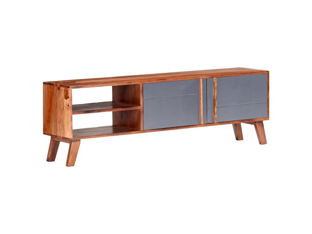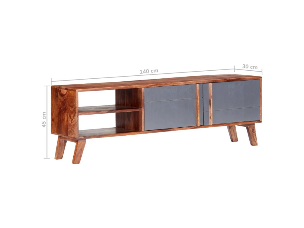 vidaXL TV skrinka sivá 140x30x45 cm masívne sheeshamové drevo
