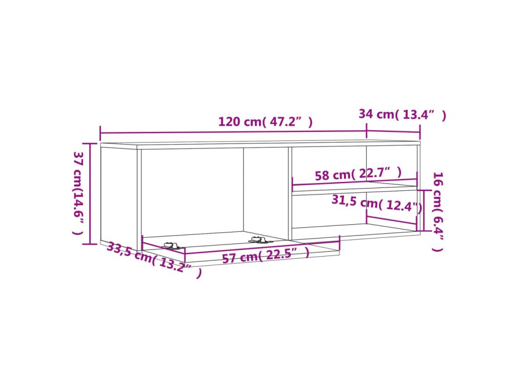 - Dostatok úložného priestoru: Táto TV skrinka ponúka praktický úložný priestor na odkladanie časopisov, kníh, diaľkových ovládačov a iných malých predmetov, ktoré budete mať dobre organizované a na dosah ruky.