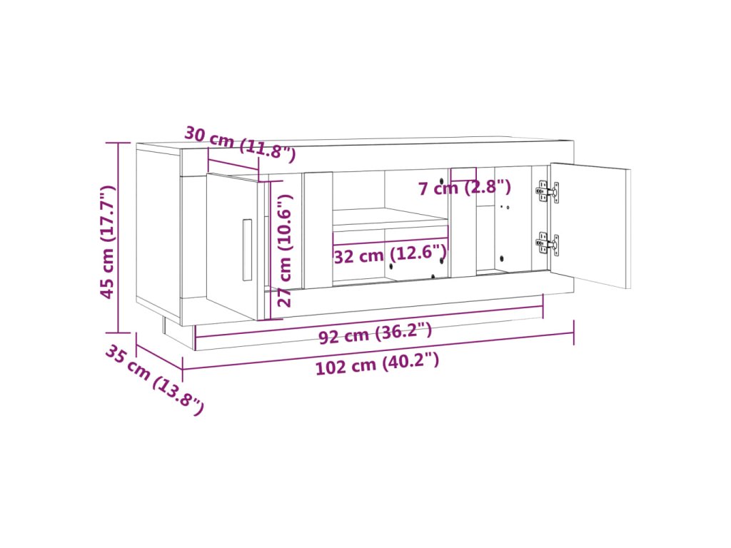vidaXL TV skrinka sivý dub sonoma 102x35x45 cm kompozitné drevo