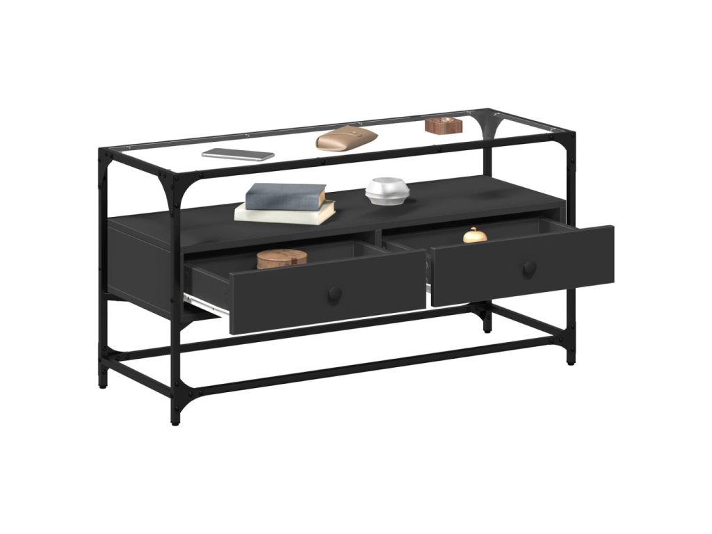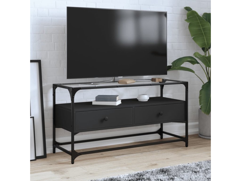 vidaXL TV skrinka sklenená doska čierna 98x35x51 cm kompozitné drevo