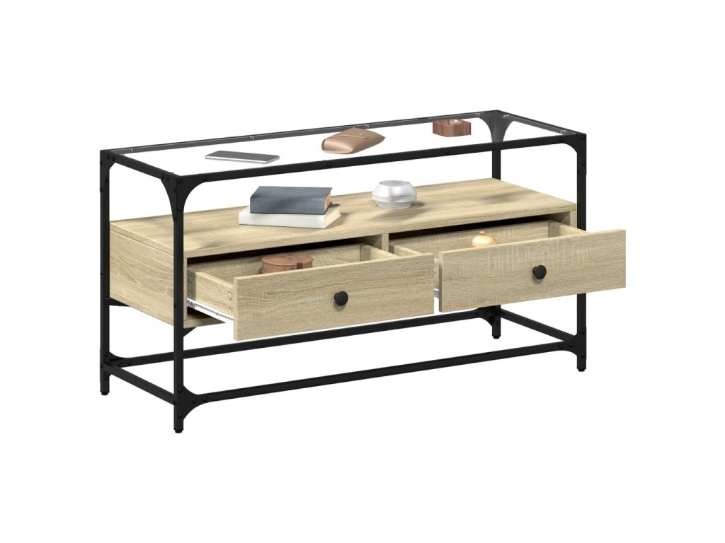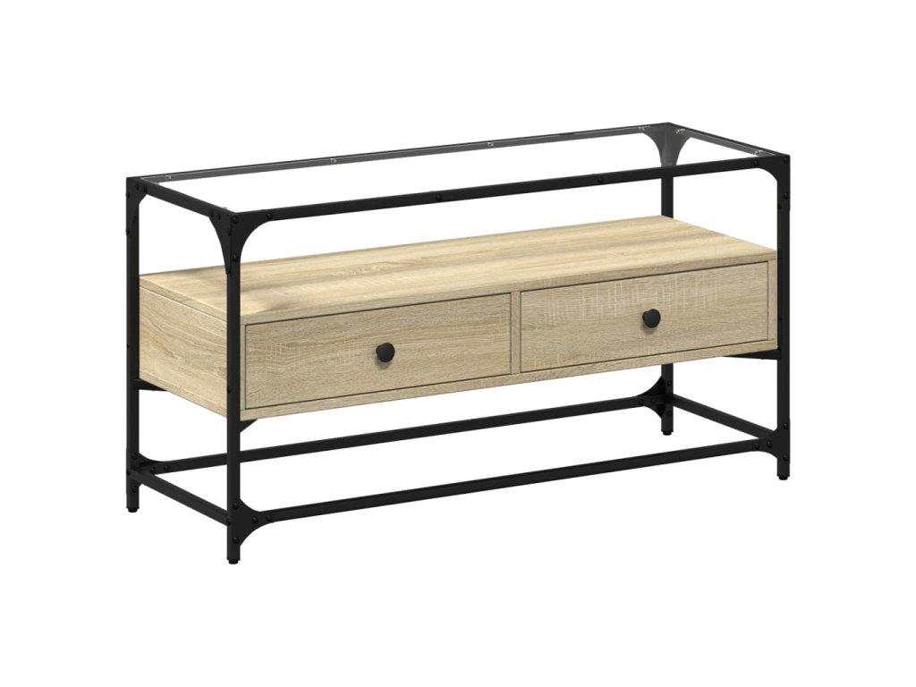 vidaXL TV skrinka sklenená doska dub sonoma 98x35x51 cm kompoz. drevo