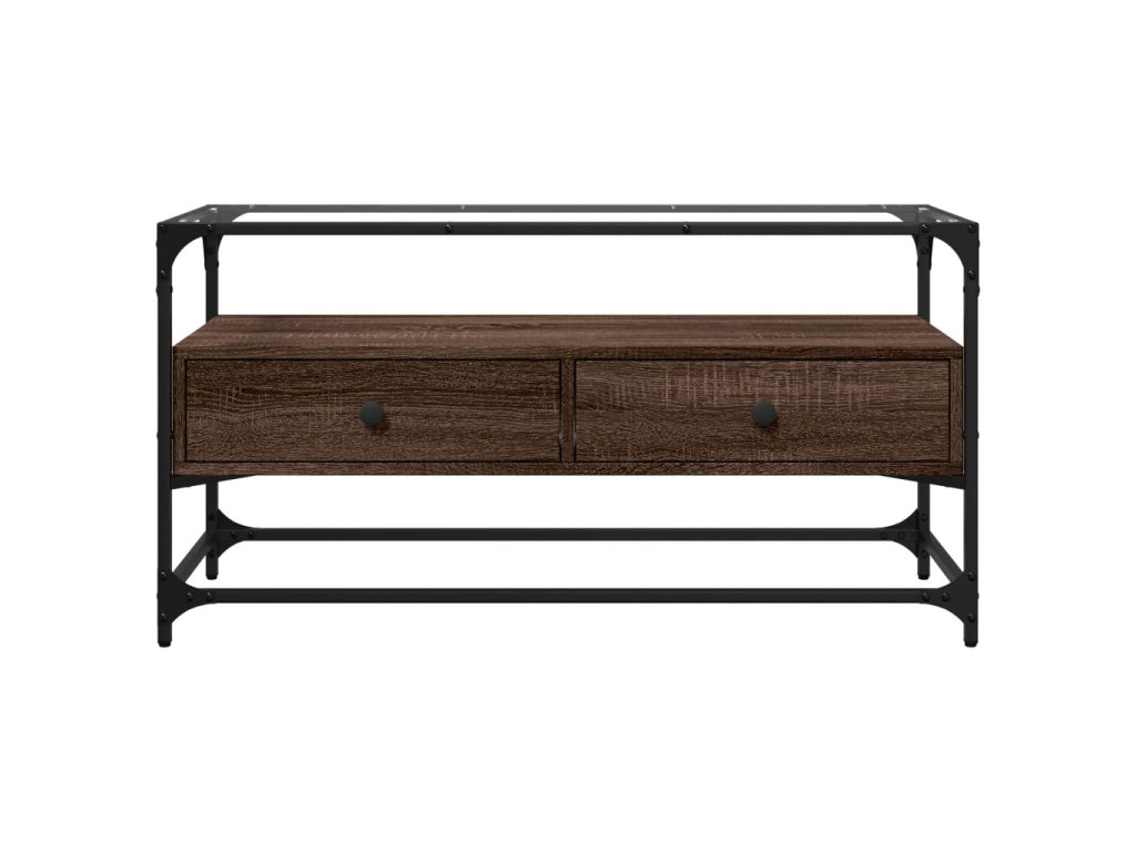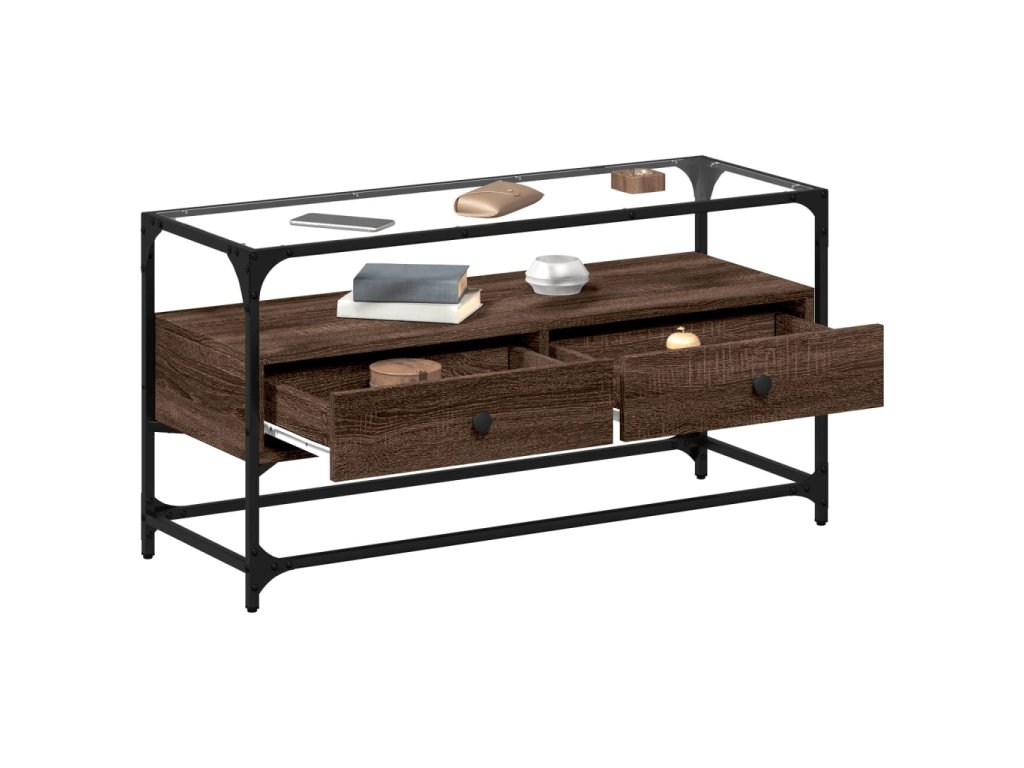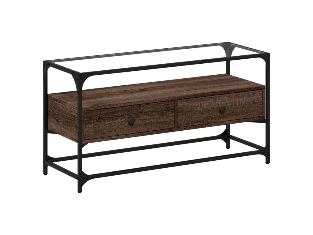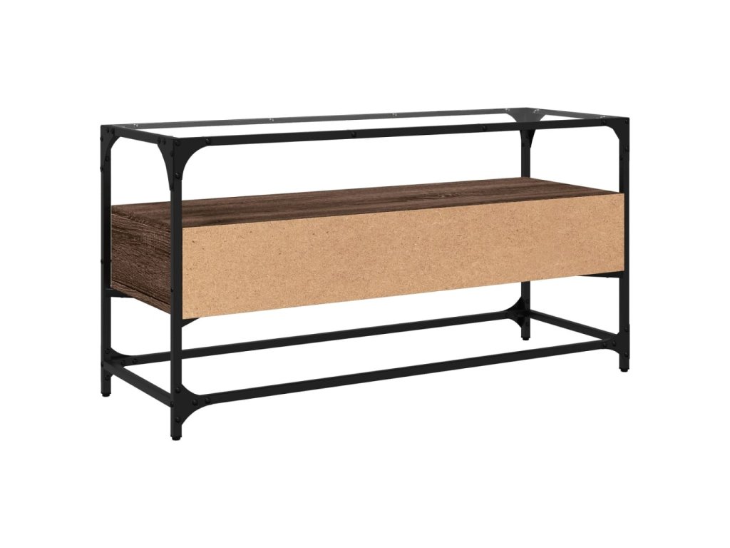 vidaXL TV skrinka sklenená doska hnedý dub 98x35x51 cm kompozit. drevo