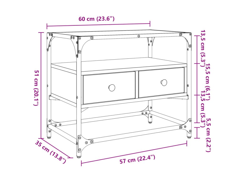 - Praktický dizajn: Táto bočná skrinka má dve zásuvky, ktoré udržujú uložené predmety v čistote.